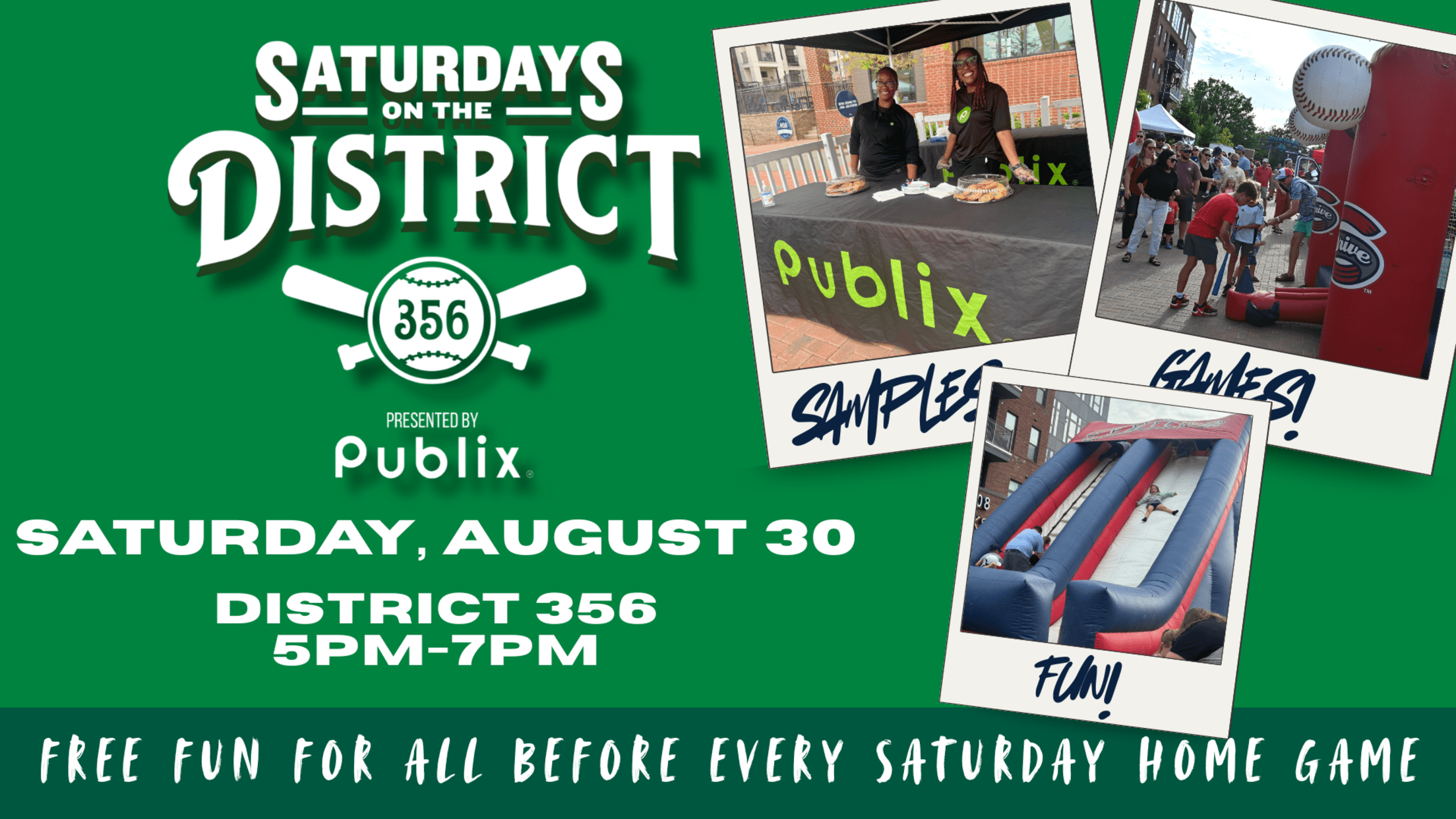 Before every Saturday home game, the fun starts outside the ballpark at the Saturdays on the District Street Party! From 5β7 PM, District 356 transforms into a lively pre-game festival packed with activities the whole family will love.