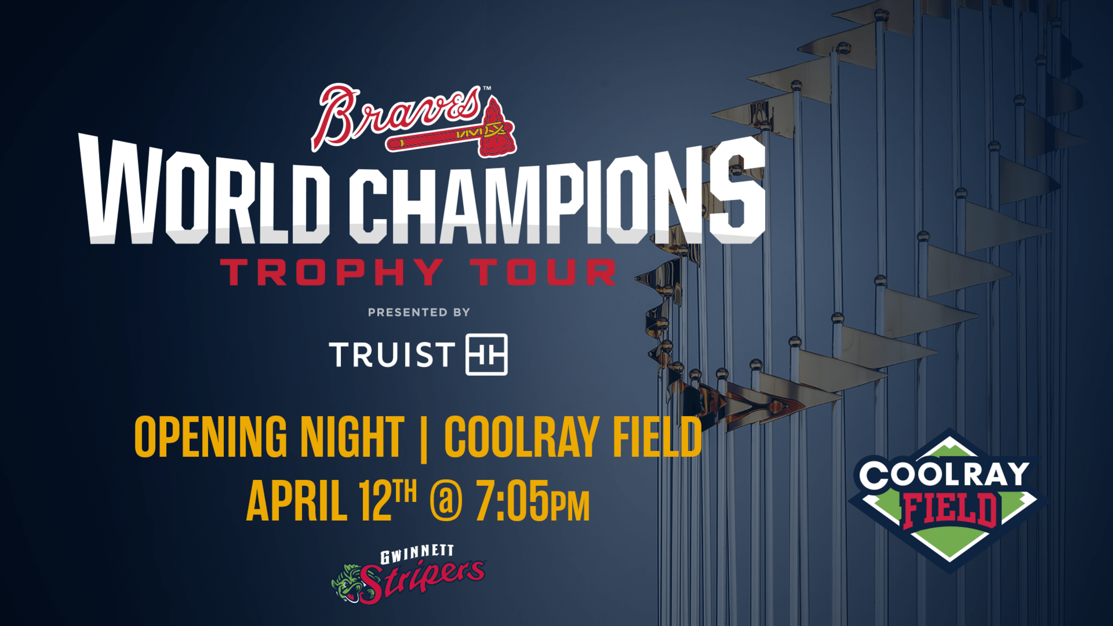 “We are proud to welcome the Braves World Champions Trophy Tour to Coolray Field for our Opening Night,” said Stripers Vice President and General Manager Erin McCormick. “The road to this Championship came through Gwinnett and we’re so excited to share this historic celebration with our fans and Braves family.”