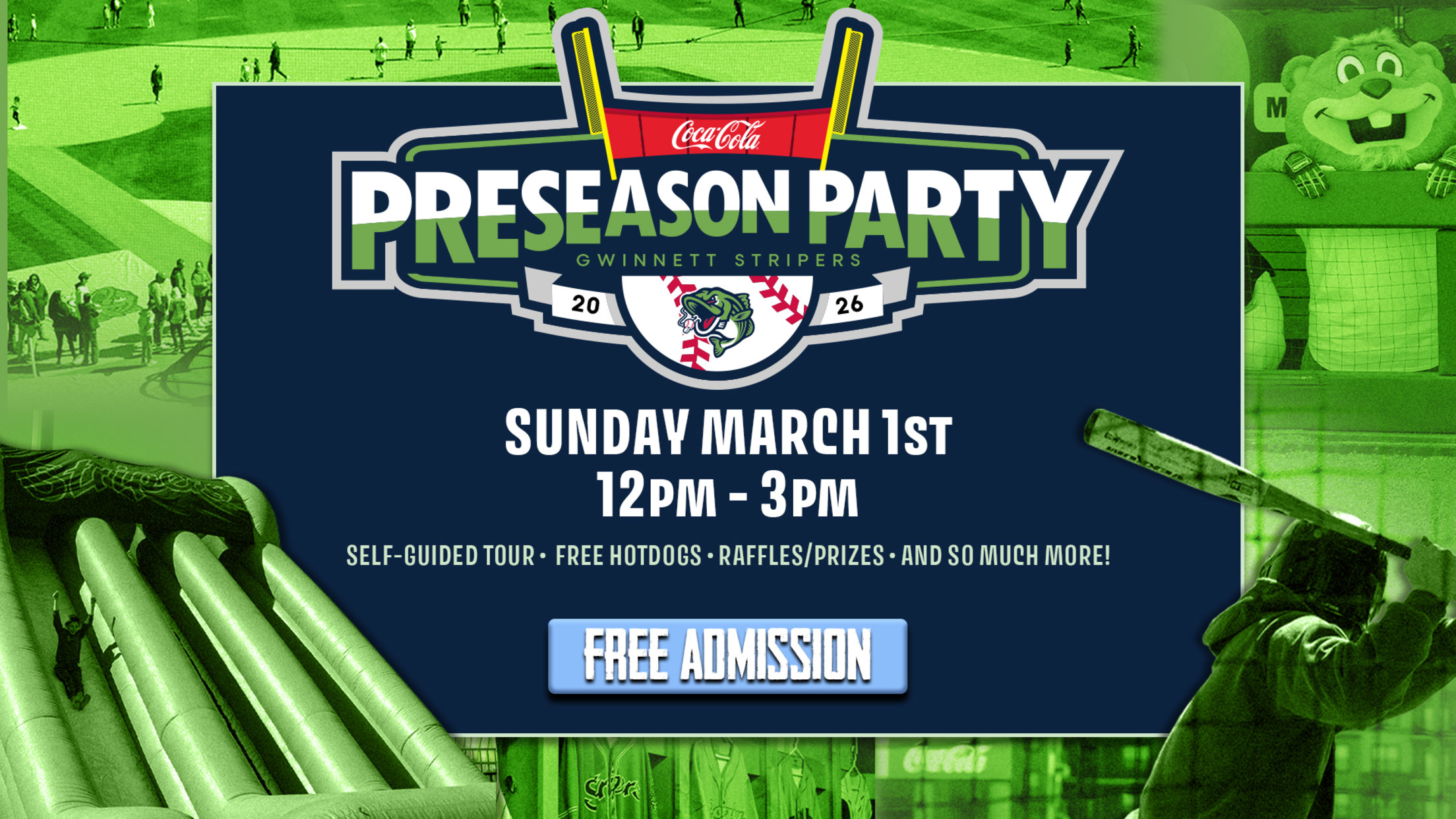 LAWRENCEVILLE, Georgia – The Gwinnett Stripers are inviting fans of all ages for a free party at the ballpark on Sunday, March 1 as the Coca-Cola® Preseason Party returns to Gwinnett Field. The rain-or-shine event runs from 12 p.m. to 3 p.m. The event is free, but fans will need