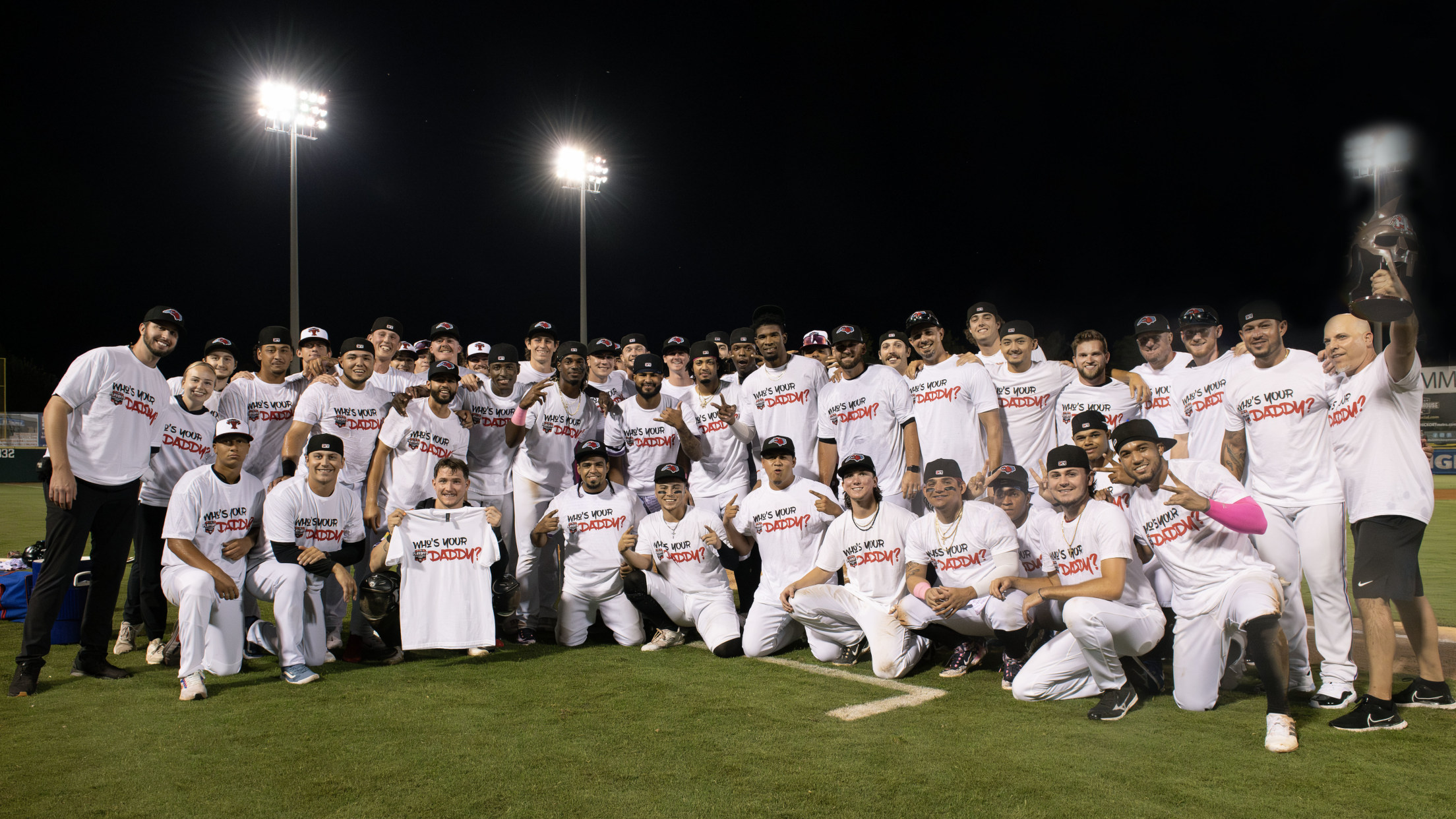The ‘Dads briefly celebrated on the field before starting the second game.