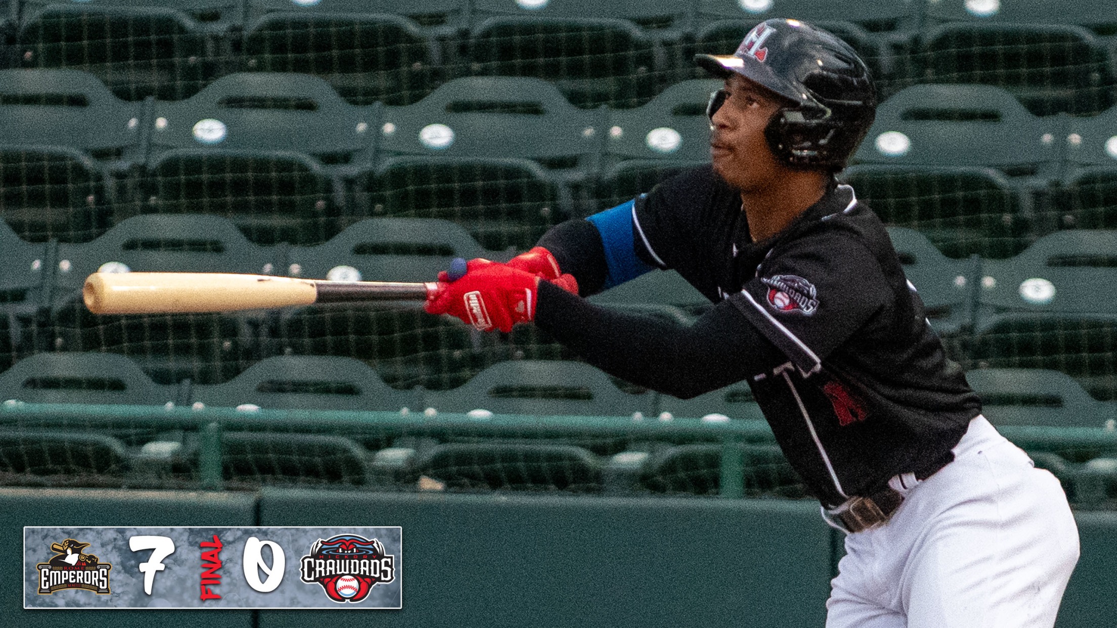 Hickory, NC- Garrett Baumann tossed seven shutout innings for Rome on Tuesday night as the Emperors blanked Hickory 7-0 at LP Frans Stadium. The Crawdads, fresh off a pair of 10-run performances against Asheville last weekend, were held to five hits in the game. Rome plated three runs in the