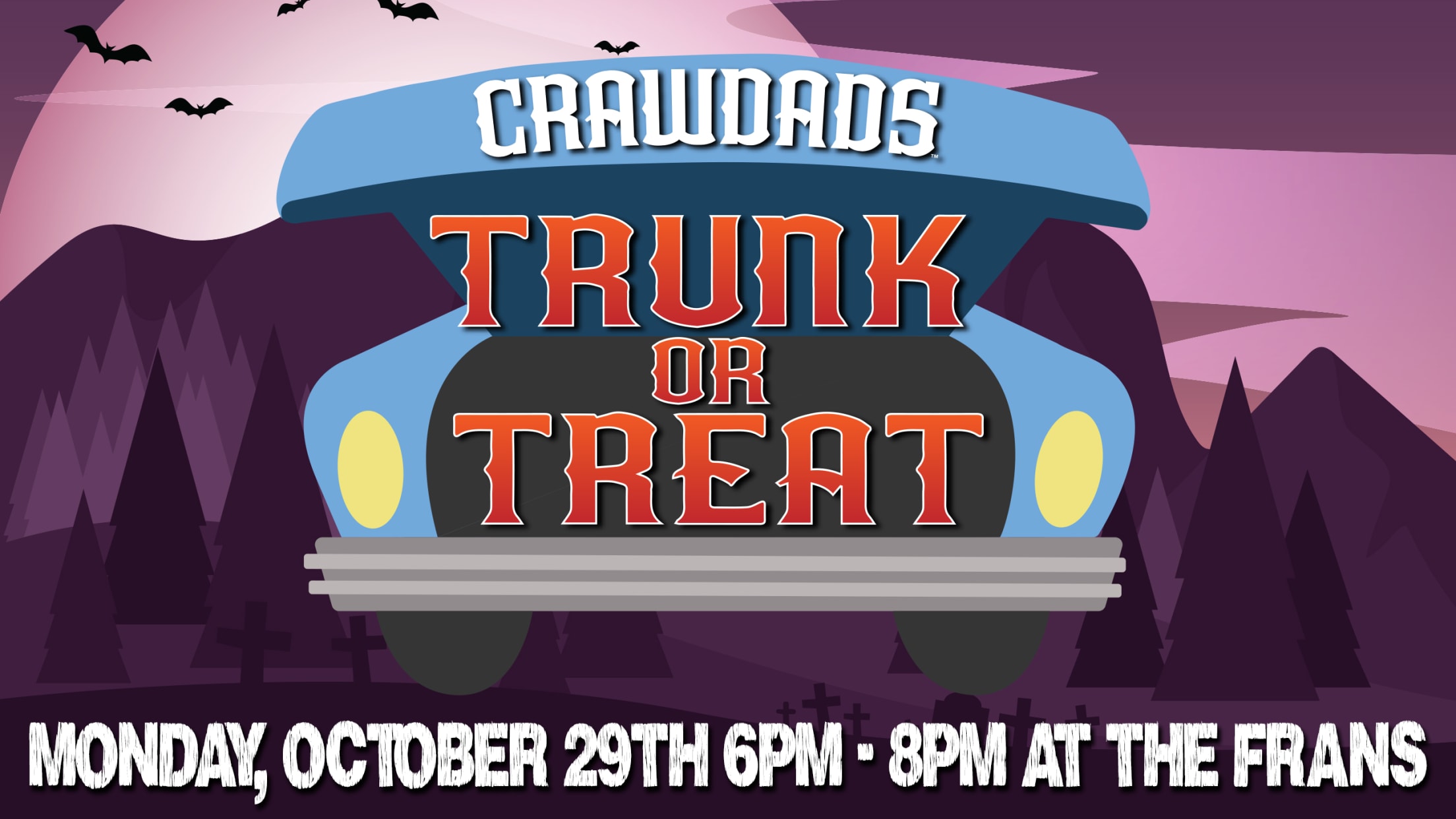 Hickory, NC- The Crawdads will be hosting their first-ever Trunk-Or-Treat at the stadium on Monday, October 29th from 6pm to 8pm. The free event will feature a family-friendly place for kids to trick-or-treat, food, Halloween-themed games, and 'Dads ticket specials.