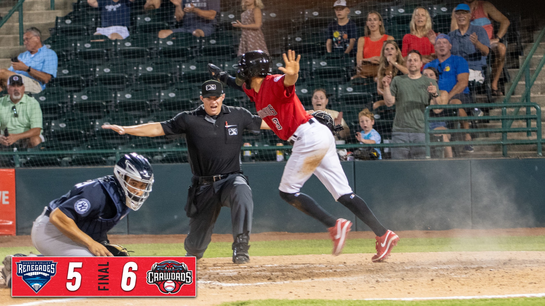 Hickory, NC- The Crawdads came back in the late innings on Thursday night, winning 6-5 on a walk-off strikeout by Keyber Rodriguez.