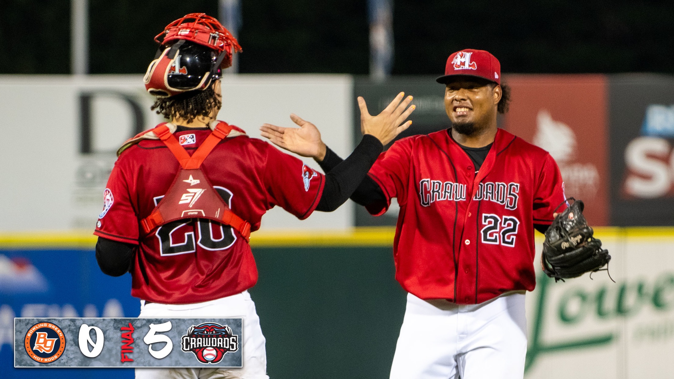 Hickory, NC- Alejandro Rosario pitched five scoreless innings on Thursday night and was supported by a 10-hit attack as the Hickory Crawdads beat the Bowling Green Hot Rods 5-0 at LP Frans Stadium.