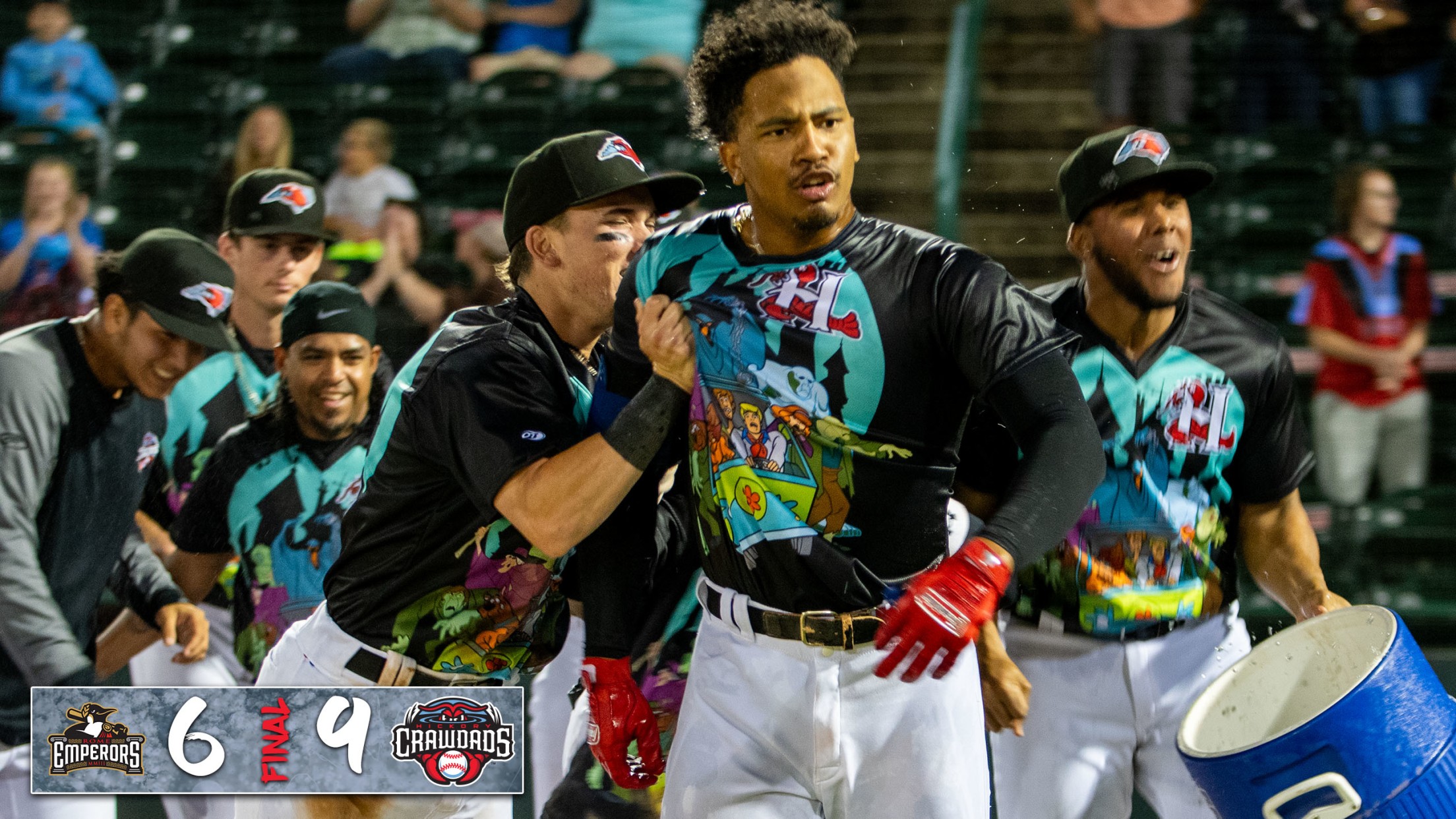 Hickory, NC- Yeison Morrobel hit a three-run walk off homer in the 10th inning to lift the Hickory Crawdads to a 9-6 win over the Rome Emperors on Saturday night at LP Frans Stadium.