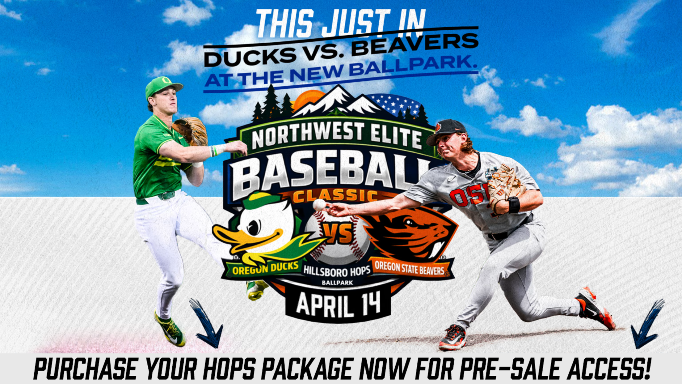 Hillsboro, Ore. (February 10, 2026) – The Hillsboro Hops announced today that the University of Oregon and Oregon State University will be playing in the Northwest Elite Baseball Classic at the brand-new Hops Ballpark on April 14th at 6:00 PM. The game will be played as a neutral-site contest, bringing two elite college baseball programs to Hillsboro.