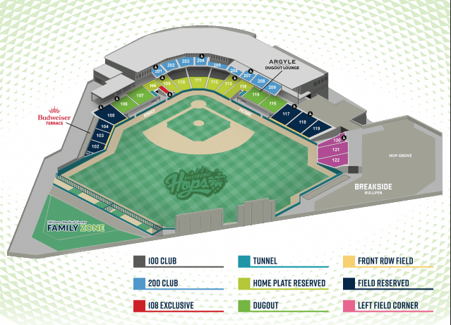 Tucked along the concourse above the 1st and 3rd base dugouts, enjoy being close to the action with your own private suite. Experience the excitement of a Hops game from a space that boasts nothing but unforgettable views of players and plays alike.