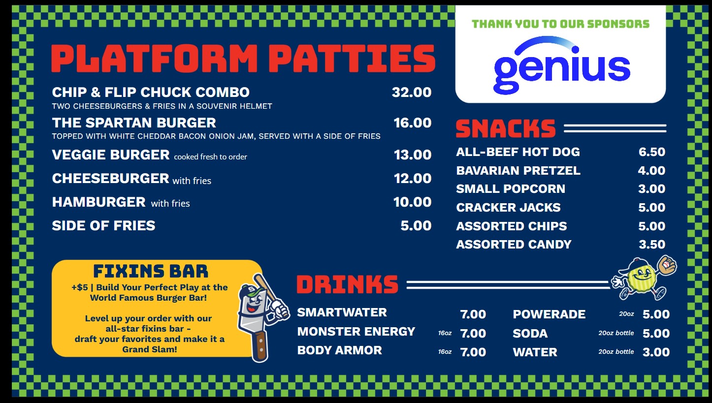 Grab the best burger in the Upstate! Featuring the Spartanburger (rotational specialty burger), Cheeseburgers, Hamburgers, Fries and More! Veggie burgers and Gluten-Free buns are available upon request.