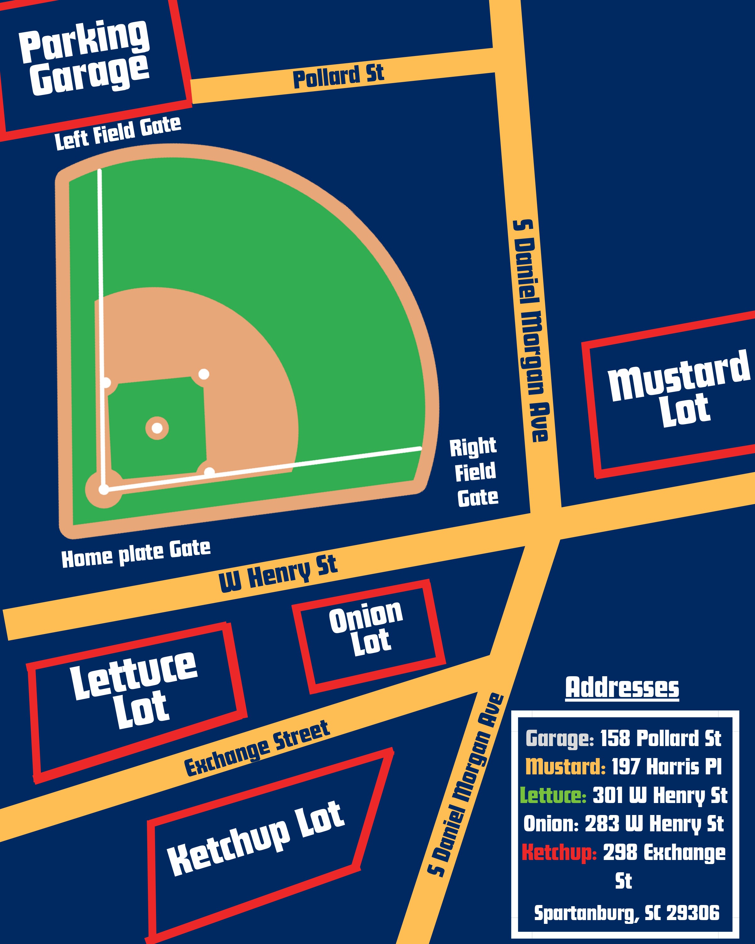 Gas powered vehicles (i.e. mopeds and scooters) are not permitted to be parked in these areas. Failure to comply could result in towing of these vehicles. The Hub City Spartanburgers and Fifth Third Park are not responsible for the loss or damage to any item(s) secured in these areas.