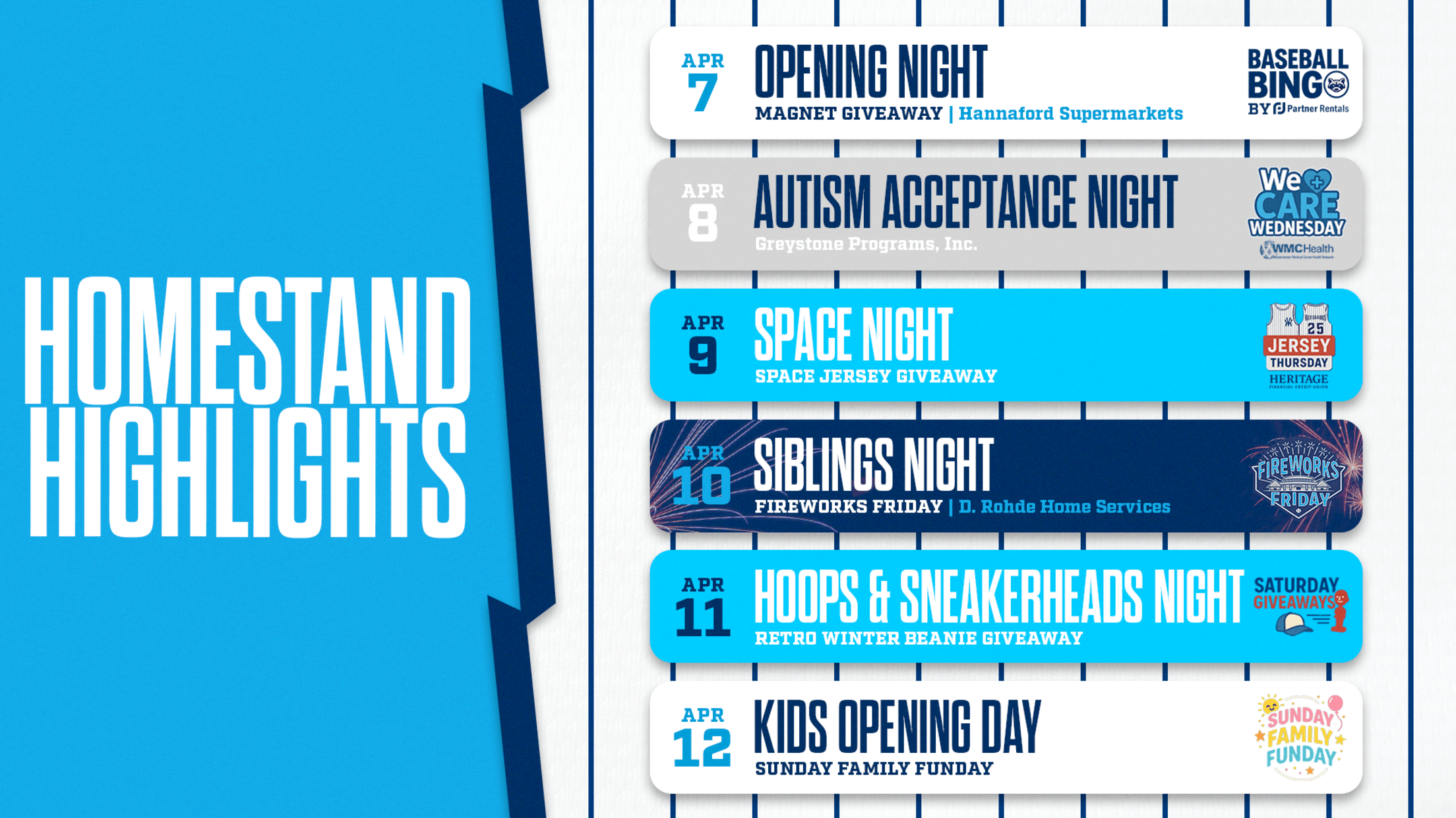 Wappingers Falls, N.Y. (April 6, 2026) – The Hudson Valley Renegades, the High-A affiliate of the New York Yankees, return home on Tuesday, April 7 to begin a six-game series with the Wilmington Blue Rocks, the High-A affiliate of the Washington Nationals, who are making their first of three trips