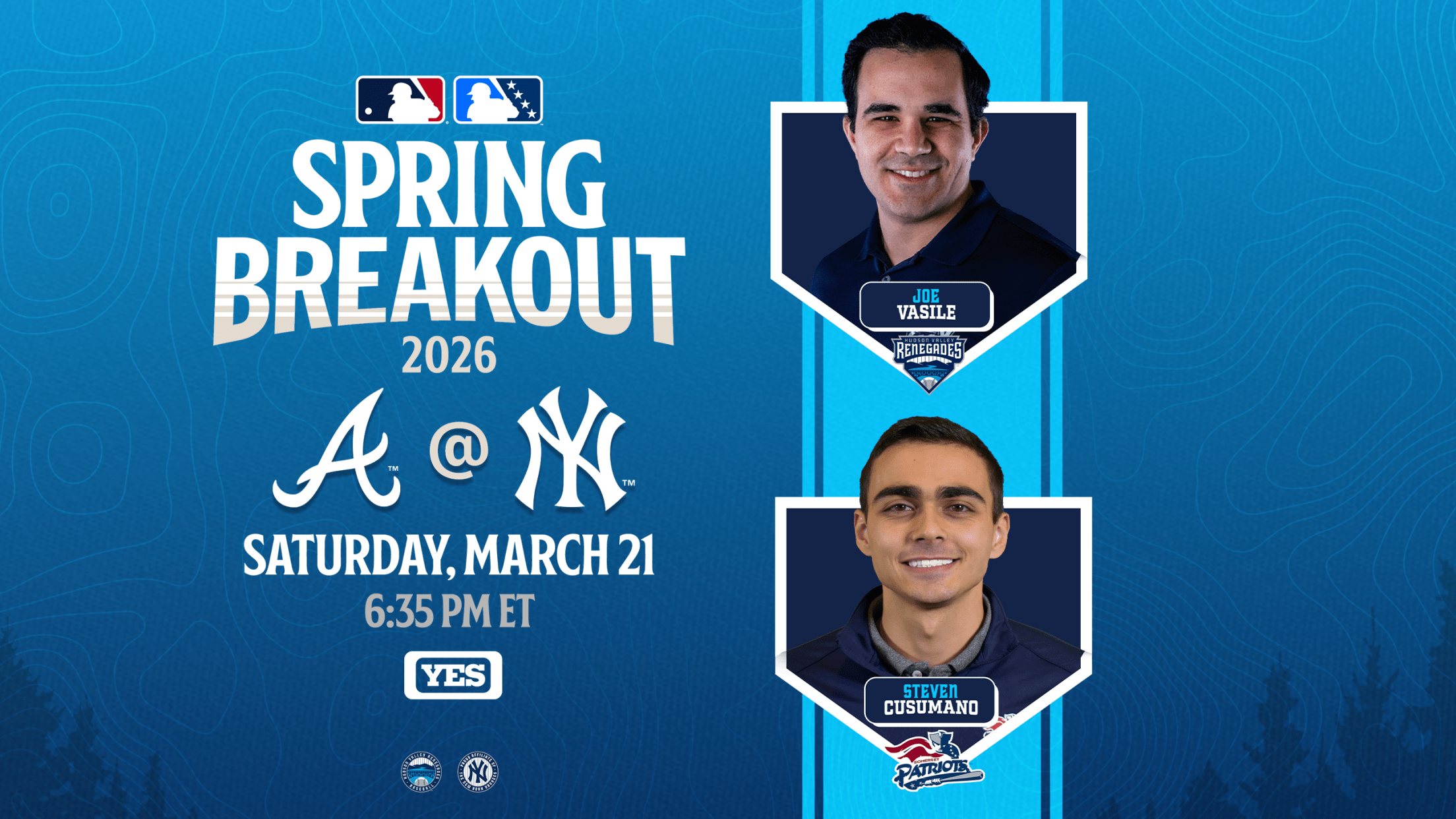 Wappingers Falls, N.Y. (March 18, 2026) – Hudson Valley Renegades Play-By-Play Broadcaster Joe Vasile will be on the call for the Yankees’ 2026 Spring Breakout Game on YES Network and The Gotham Sports App on Saturday, March 21 at 6:35 p.m. The Yankees prospect team is set to take on