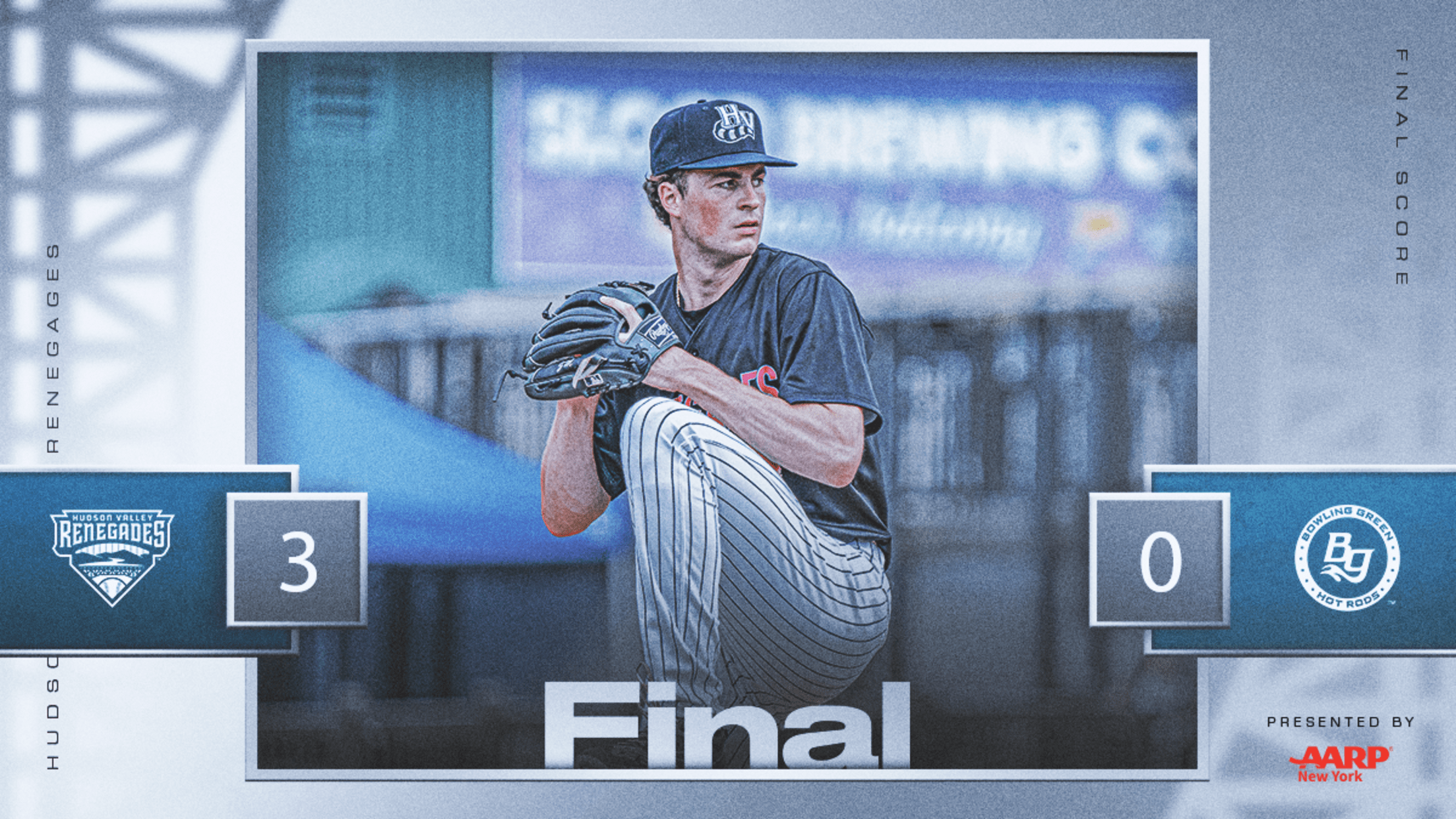 Bowling Green, Ky. (April 7, 2024) — The Hudson Valley Renegades used another dominating pitching performance to shut out the Bowling Green Hot Rods 3-0 on Sunday afternoon at Bowling Green Ballpark. Three Renegades pitchers combined for a two-hit shutout, the first of the year for Hudson Valley.