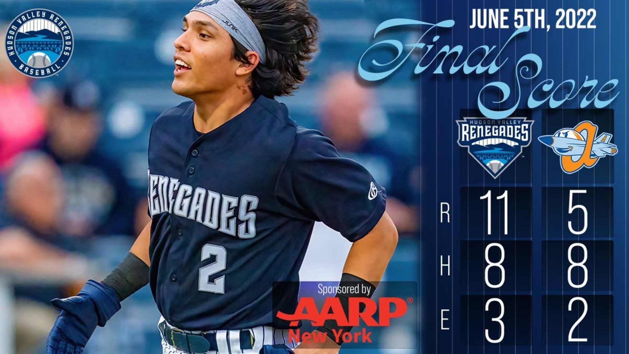 ABERDEEN, Md. (June 5, 2022) — The Hudson Valley Renegades sent 12 batters to the plate in an eight-run seventh inning, fueling an 11-5 come-from-behind victory over the Aberdeen IronBirds. With the win, the Renegades took four of six from the top team in the South Atlantic League.