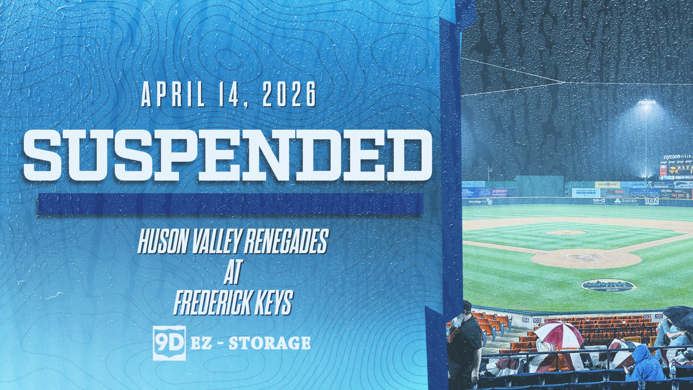 Frederick, Md. (April, 14, 2026) – The Hudson Valley Renegades game with the Frederick Keys on Tuesday night at NYMEO Field at Harry Grove Stadium was suspended in the top of the third inning with the Renegades leading 4-2. The game will be resumed to its nine-inning conclusion as part of a quasi-doubleheader on Wednesday, with a seven-inning game to follow. First pitch is scheduled for 5 p.m.