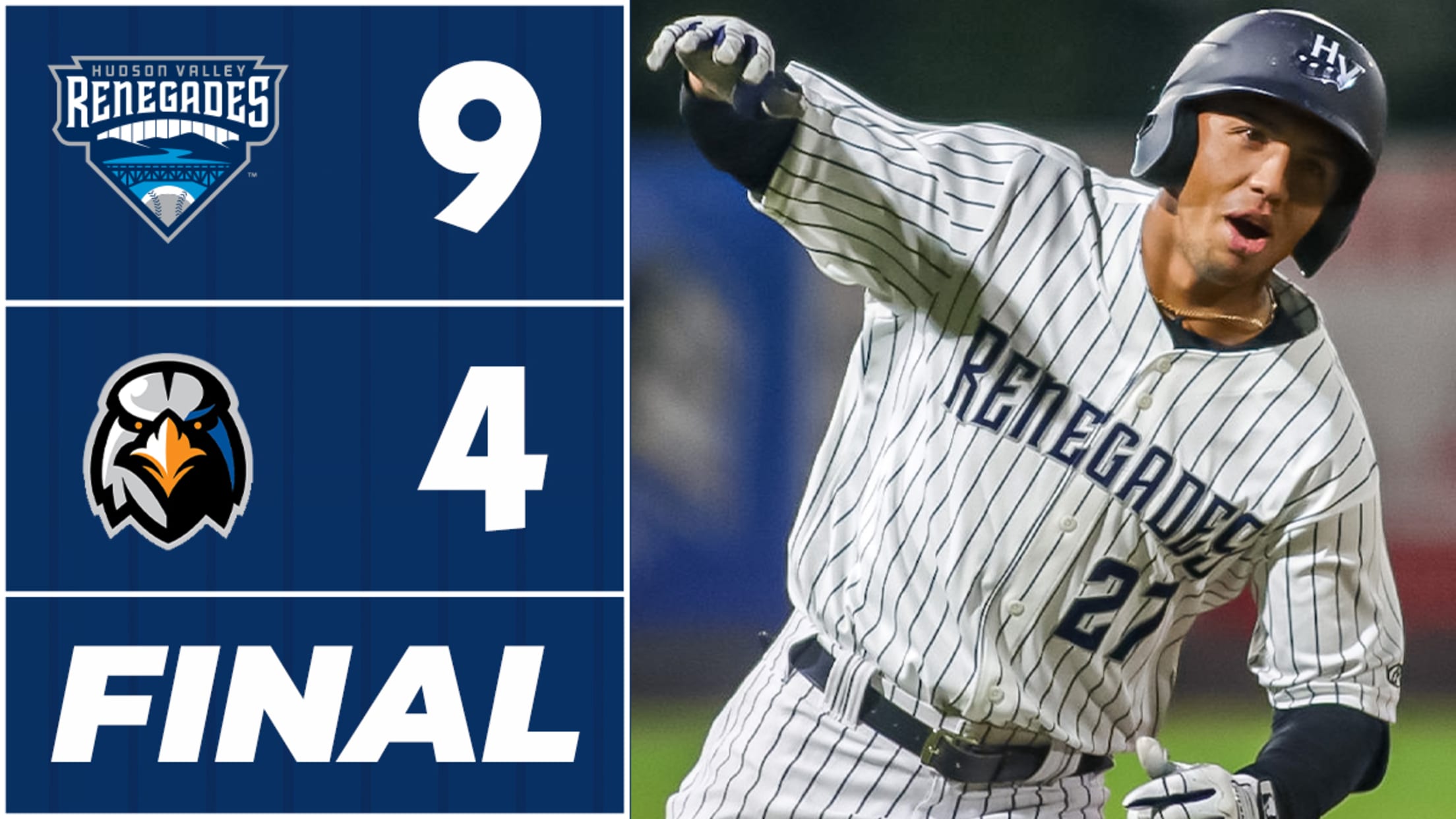 WAPPINGERS FALLS, NY (May 14, 2021) – Oswald Peraza saw two pitches and hit two home runs, driving in four to lead the Hudson Valley Renegades to a 9-4 win over the Aberdeen IronBirds on Friday night at Dutchess Stadium.