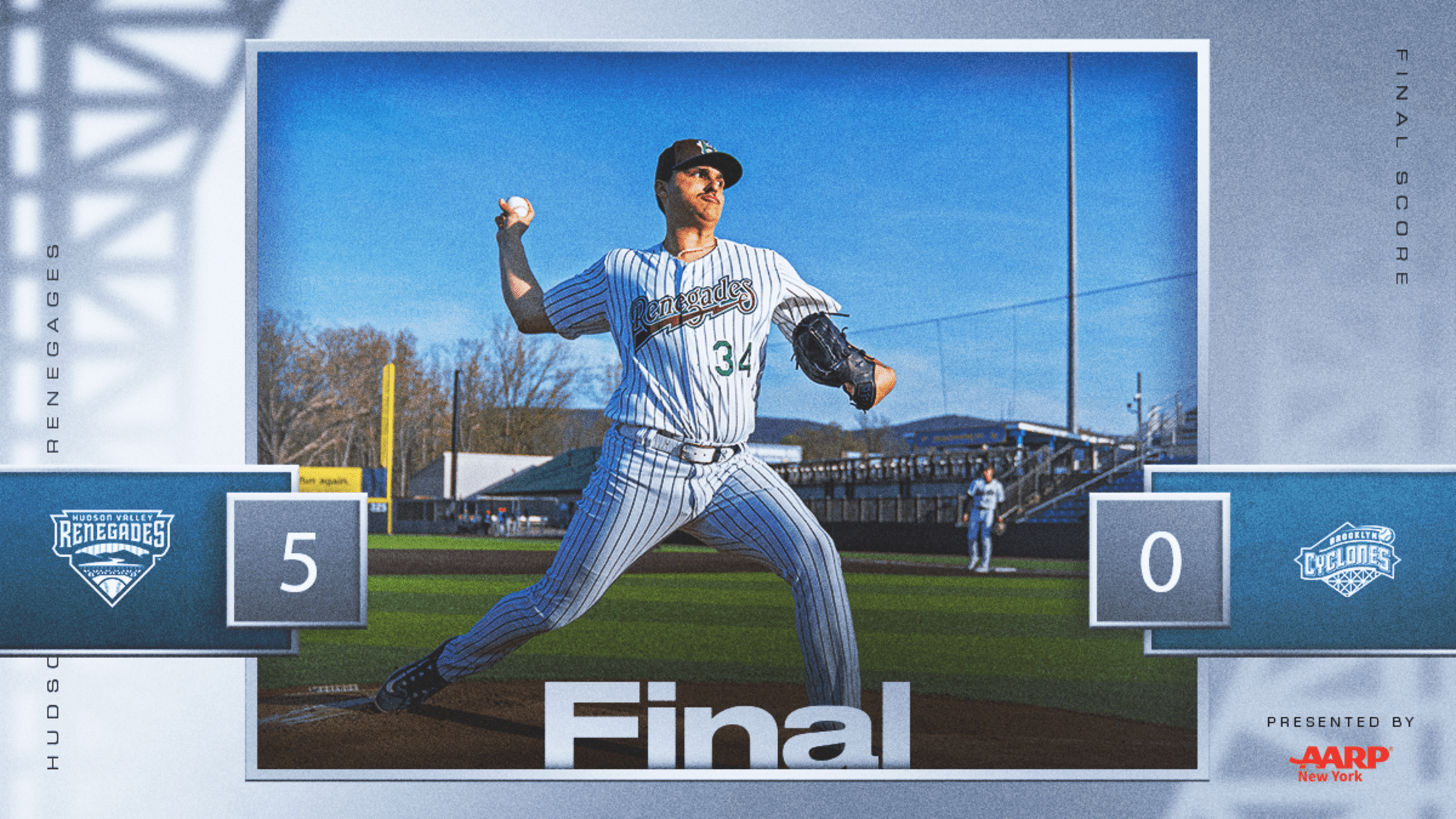 Brooklyn, N.Y. (July 1, 2024) — Behind a dominating outing from Baron Stuart, the Hudson Valley Renegades earned a 5-0 victory over the Brooklyn Cyclones on Monday night at Maimonides Park. The win marked Hudson Valley’s second shutout in its last five games, and their sixth win in their last