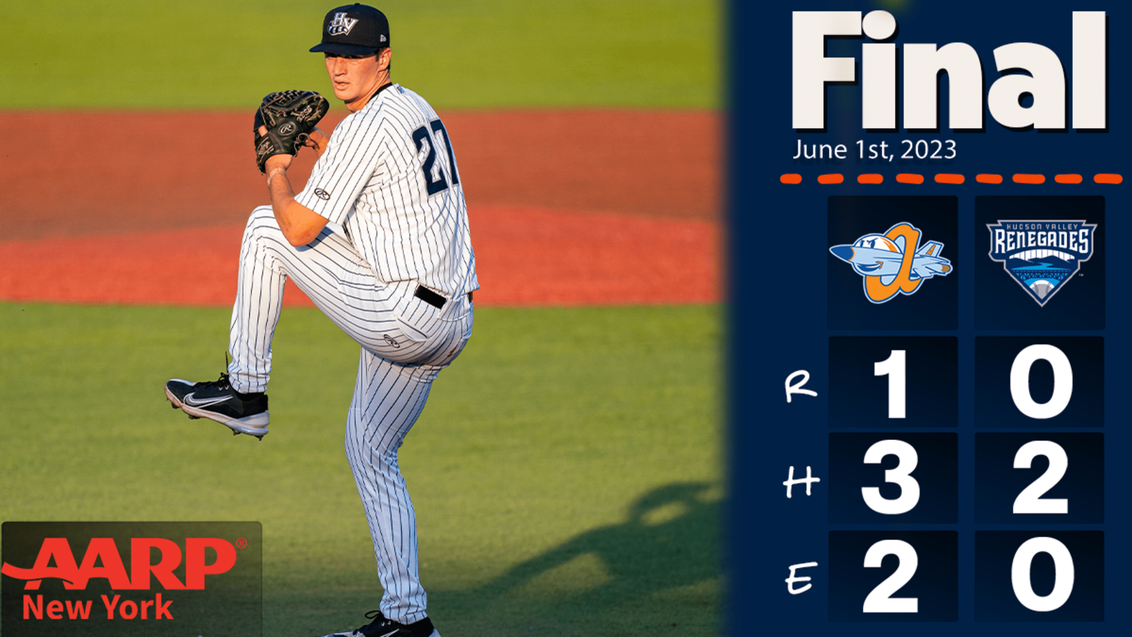 WAPPINGERS FALLS, N.Y. (June 1, 2023) — The Aberdeen IronBirds squeaked by the Hudson Valley Renegades 1-0 on Thursday night at Heritage Financial Park, handing Hudson Valley its third straight loss.