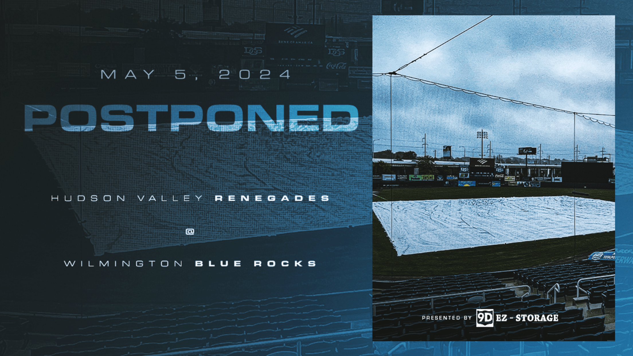 Wilmington, Del. (May 5, 2024) — Sunday’s regularly-scheduled game between the Hudson Valley Renegades and Wilmington Blue Rocks has been postponed due to rain at Frawley Stadium. The game will be made up as part of a doubleheader on a later date in the first half comprised of two seven-inning