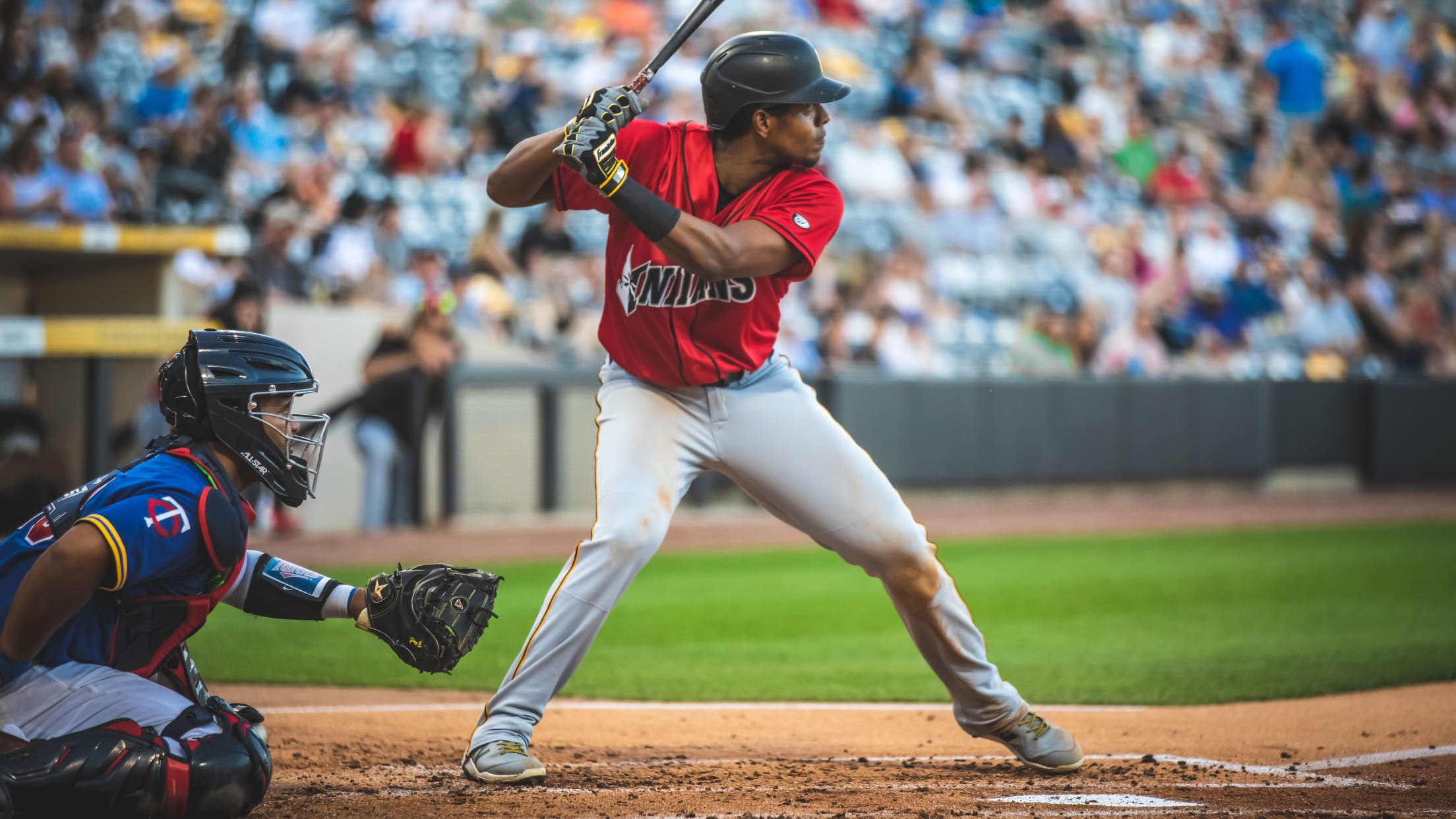 Ke'Bryan Hayes doubled and homered in Sunday's loss. (Photo by Rob Thompson, St. Paul Saints)
