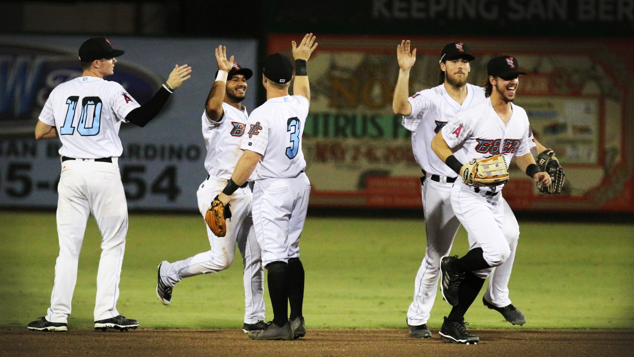 San Bernardino, CA- The Inland Empire 66ers of San Bernardino stymied the Modesto Nuts 6-0 on Saturday and with three pitchers combining on a one-hit shutout and securing the Sixers third consecutive shutout. Inland Empire (58-55, 25-18) has now allowed no runs in its last 28.1 IP and surrendered just