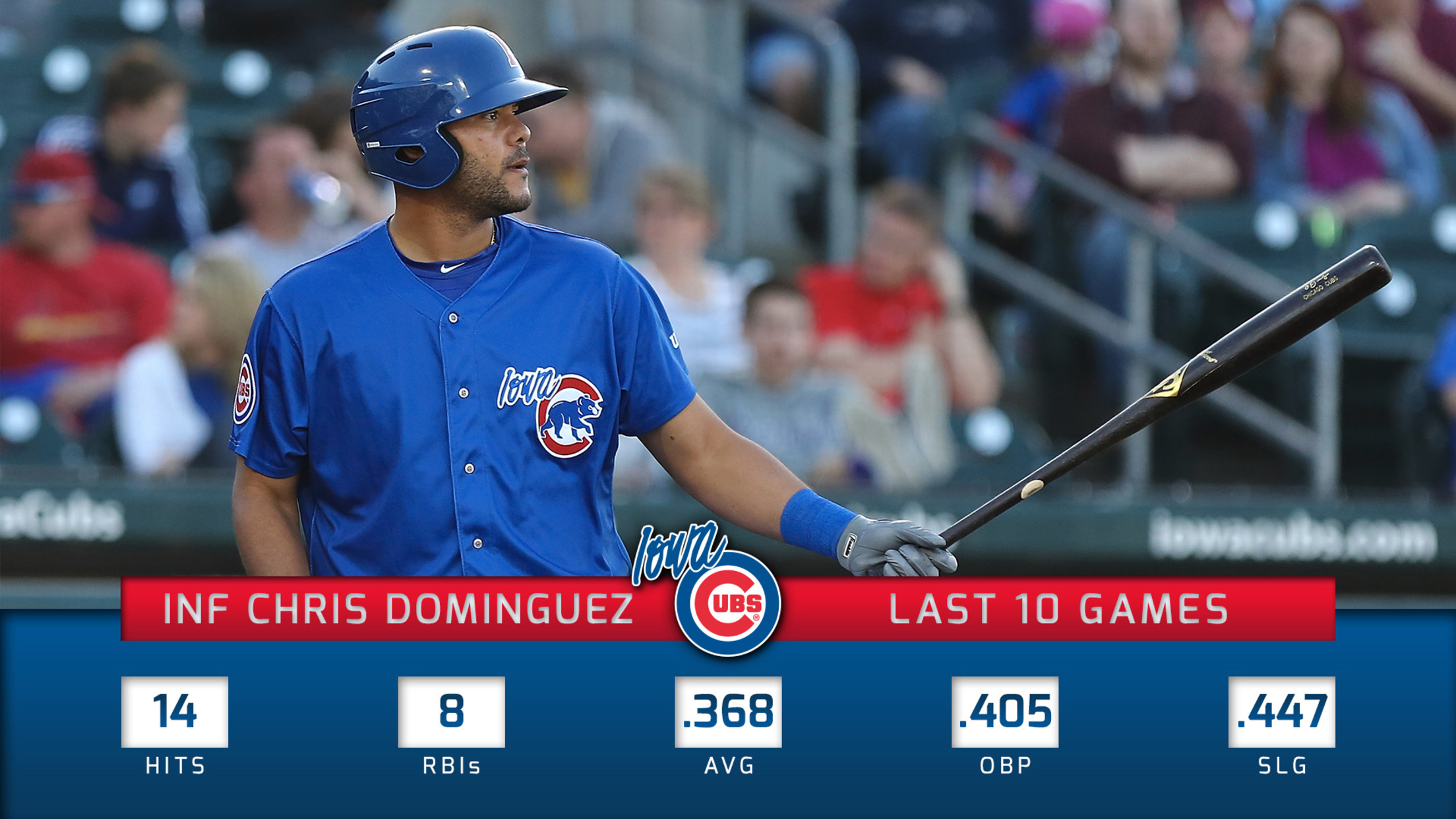 Iowa Cubs (19-22) vs. Tacoma Rainiers (26-15)RHP Aaron Brooks (3-3, 7.24) vs. RHP Nathan Bannister (0-0 0.00)1:08 p.m. | Principal Park | Des Moines, IA