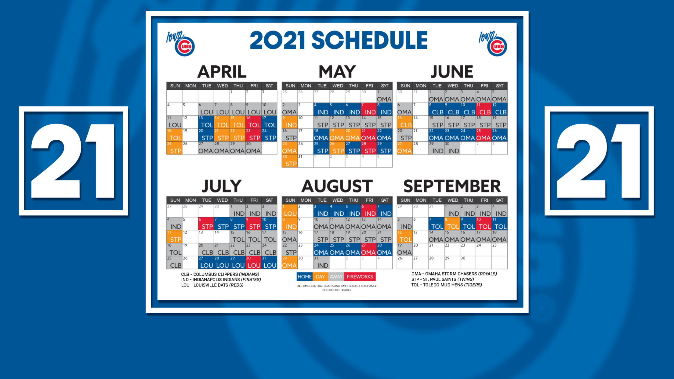 More information regarding game times, 2021 ticketing, and COVID-19 protocols will be released at a later date. For all the latest Iowa Cubs news, visit www.iowacubs.com or sign up for our email newsletter.