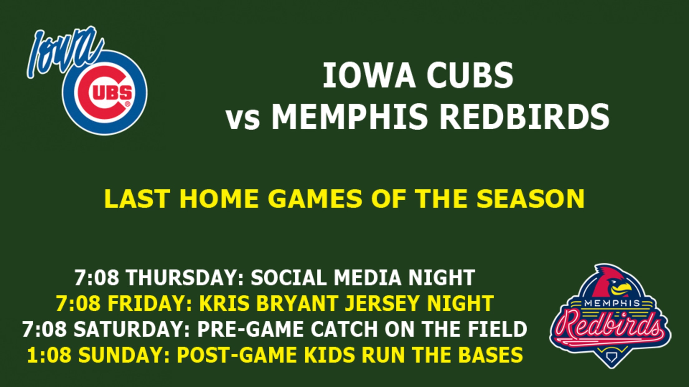 Iowa Cubs vs. Memphis Redbirds, 7:08 p.m.