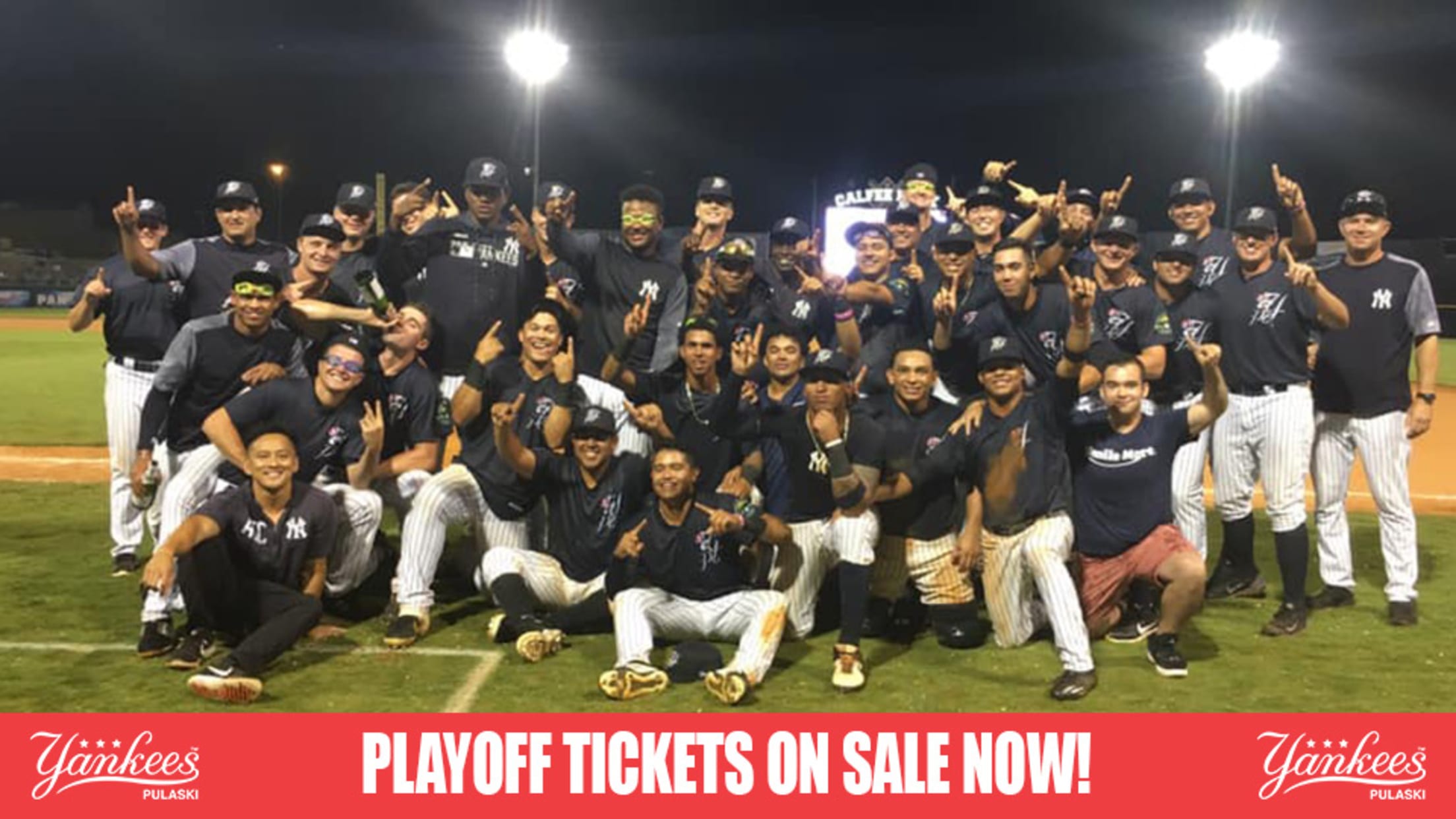 PULASKI, Va. - Playoff tickets for the 2019 Appalachian League Divisional Round at Calfee Park presented by Edible Arrangements in Blacksburg are on sale now. The Yankees clinched the Appalachian East title and home-field advantage throughout the playoffs with a 3-0 win over the Burlington Royals Sunday night.