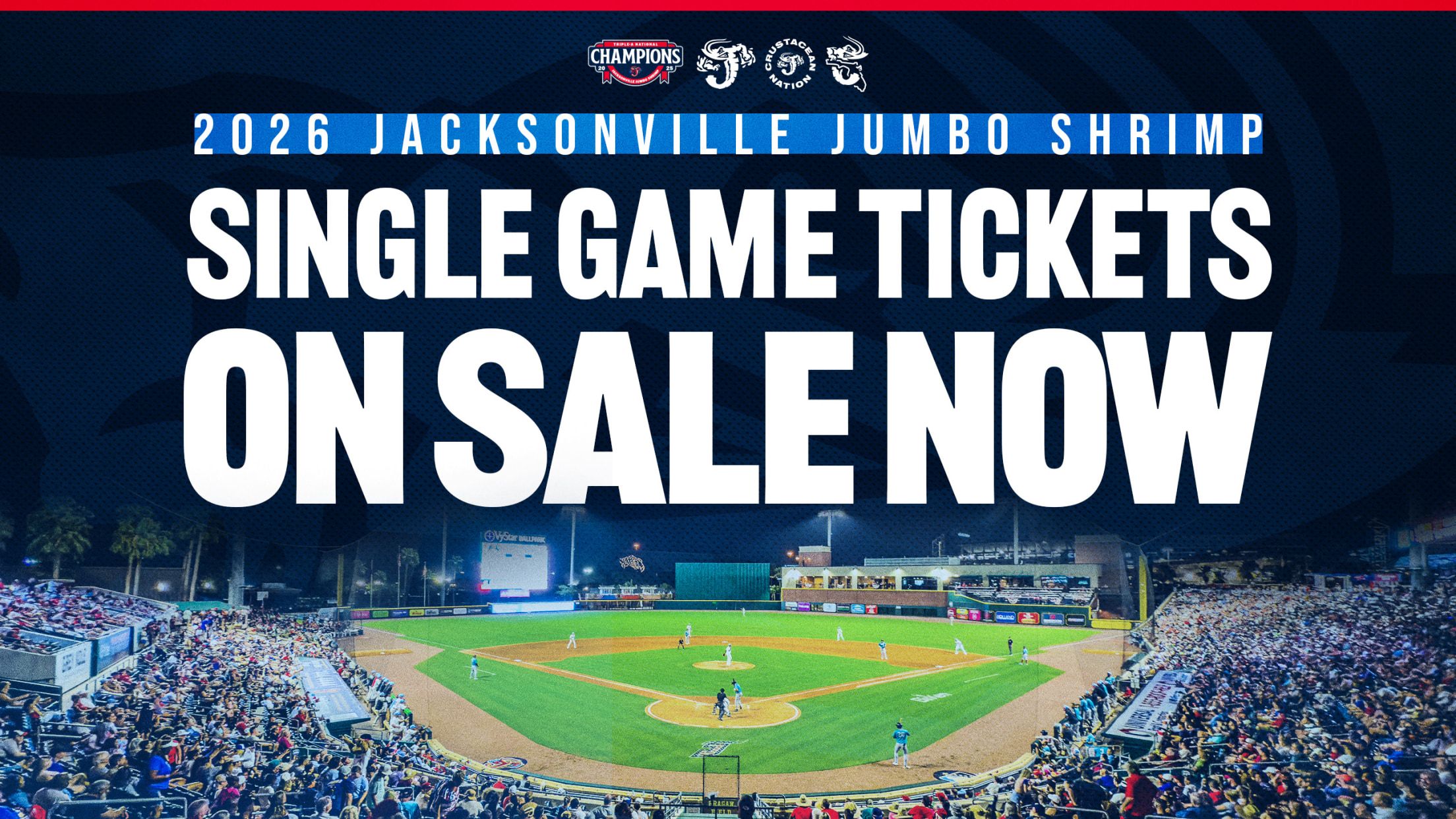 JACKSONVILLE, Fla. – Single-game tickets for the Jacksonville Jumbo Shrimp’s 2026 season will go on sale at 10 a.m. on Wednesday, February 25 for all 75 regular season home games from March 27 through September 13. The Miller Electric Box Office will be open three hours prior to first pitch