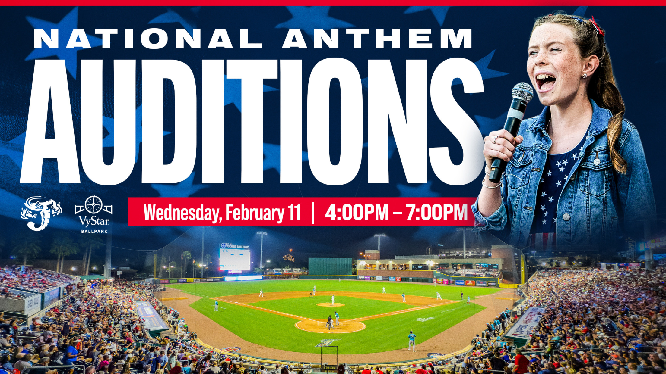 NATIONAL ANTHEM AUDITION REGISTRATION FORM JACKSONVILLE, Fla. – As the Jacksonville Jumbo Shrimp prepare to open their 2026 schedule of 75 home games on March 27, the club is inviting the talent of Northeast Florida to audition to perform the National Anthem before a Jumbo Shrimp home game during the