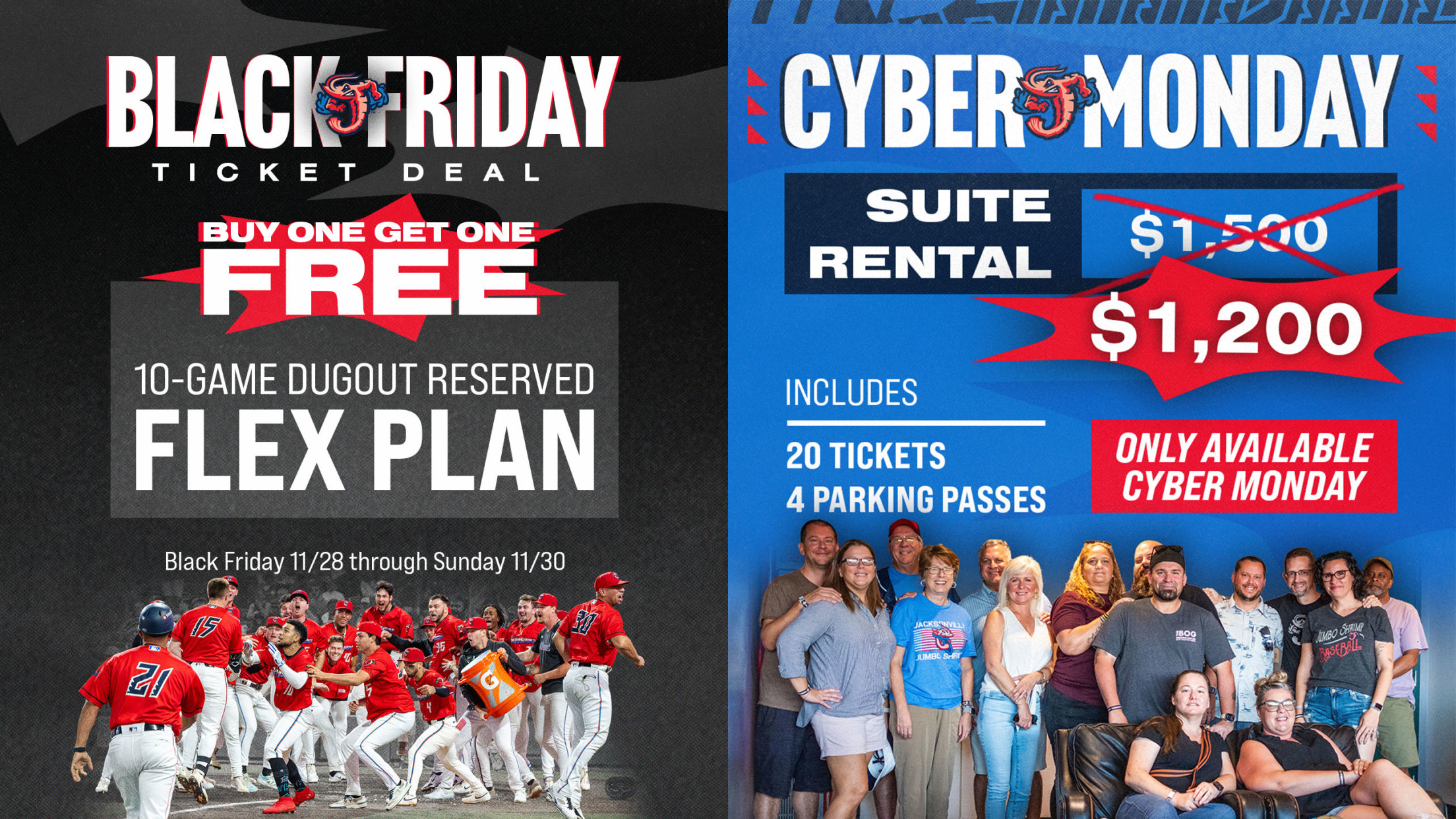 JACKSONVILLE, Fla. – The Jacksonville Jumbo Shrimp are excited to roll out their third annual Black Friday and Cyber Monday deals to help provide unforgettable gifts and memories for the holiday season. From November 28-30, Jumbo Shrimp dugout reserved flex plan 10-packs will be buy-one, get-one-free when purchasing via this