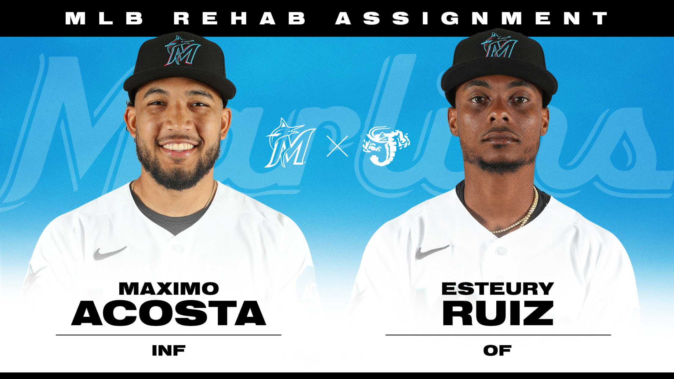 JACKSONVILLE, Fla. – Miami Marlins infielder Maximo Acosta and outfielder Esteury Ruiz are slated to join the Jacksonville Jumbo Shrimp on a rehab assignment beginning with Wednesday’s 7:05 p.m. ballgame against the Charlotte Knights from VyStar Ballpark.