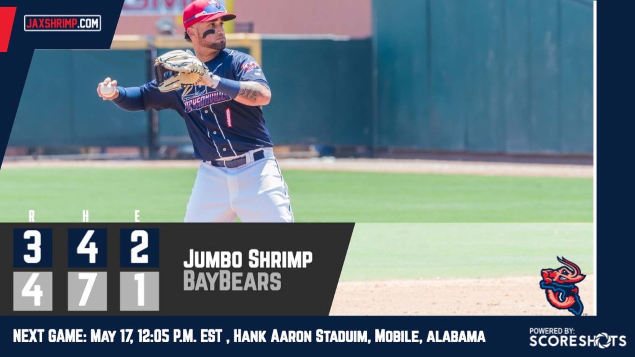 MOBILE, Ala. - The Jacksonville Jumbo Shrimp (15-24) fell to the Mobile BayBears (16-23) by a 4-3 score in the fourth game of the five-game series at Hank Aaron Stadium on Tuesday night.