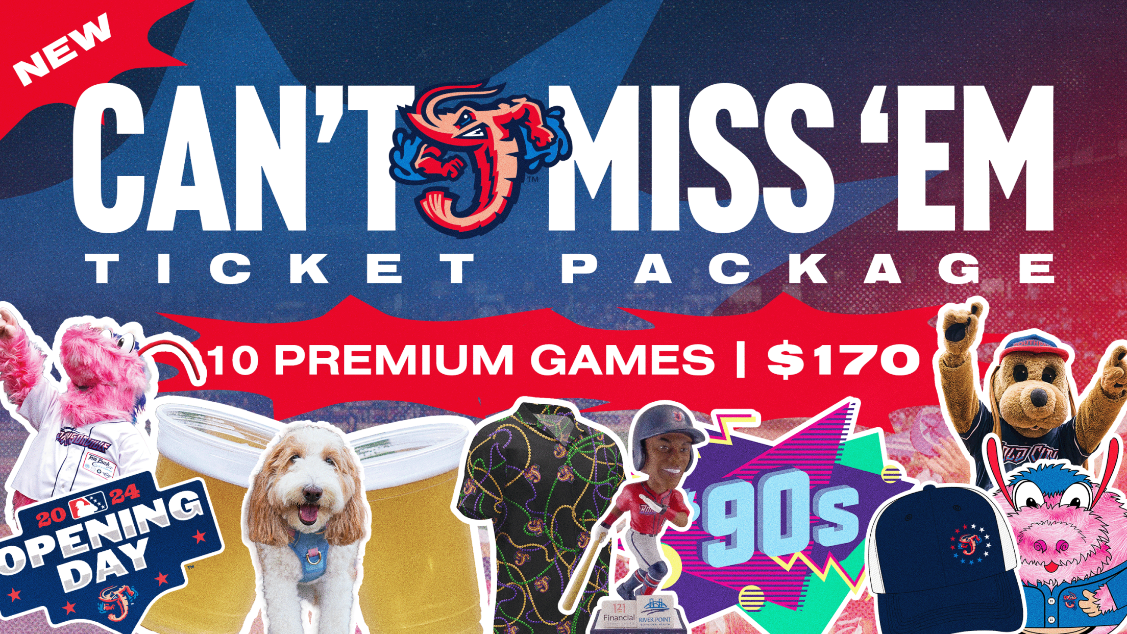 Fans can purchase a Can’t Miss ‘Em package or other season ticket packages, mini plans and group outings on www.jaxshrimp.com or by calling the Jumbo Shrimp at (904) 358-2846.