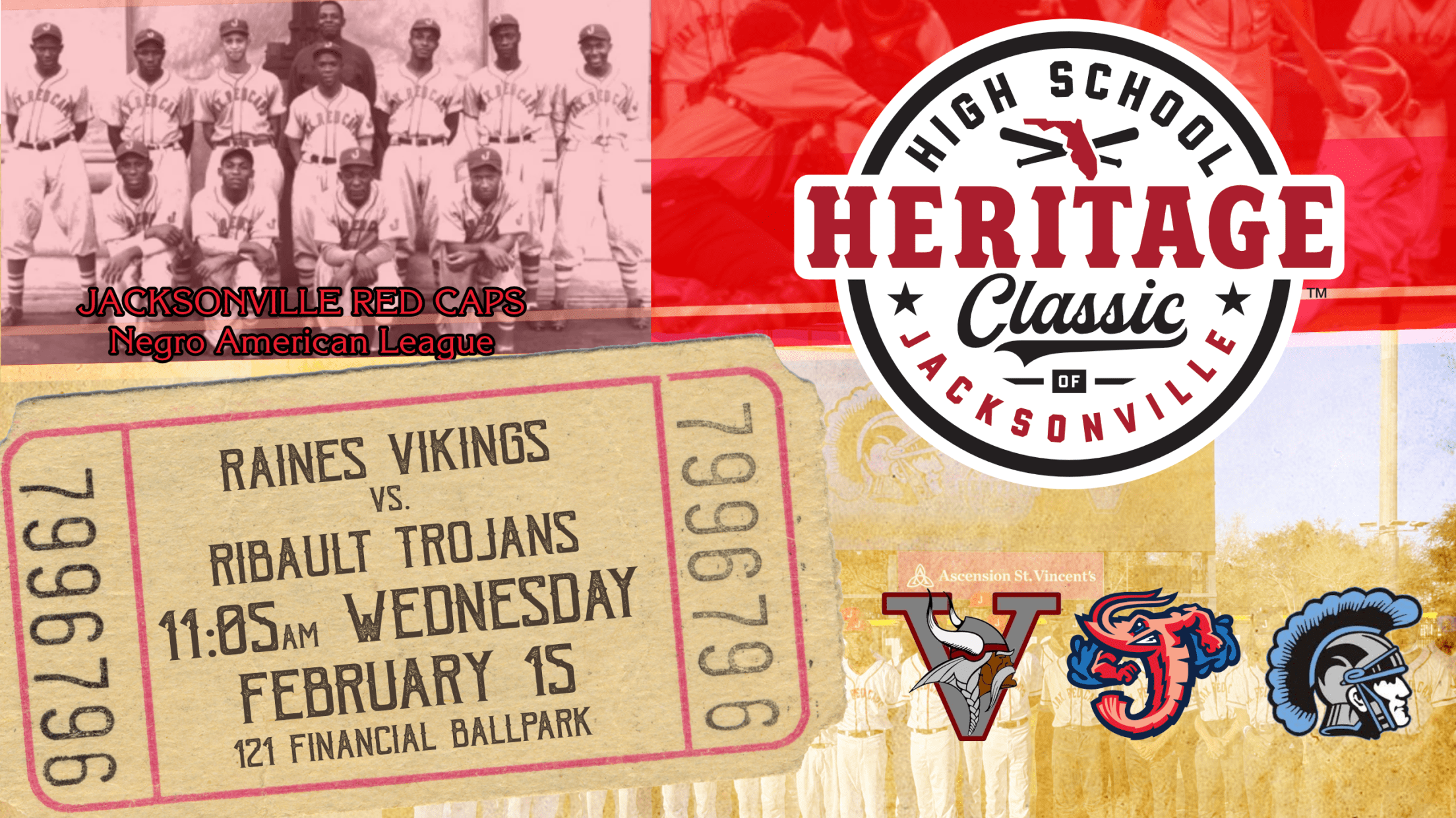 JACKSONVILLE, Fla. – As part of the Jacksonville Jumbo Shrimp’s salute to Black History Month, the club is hosting historic Duval County Public Schools rivals William M. Raines High School and Jean Ribault High School to play in the fourth annual High School Heritage Classic exhibition game at 11:05 a.m. on Wednesday, February 15 at 121 Financial Ballpark.
