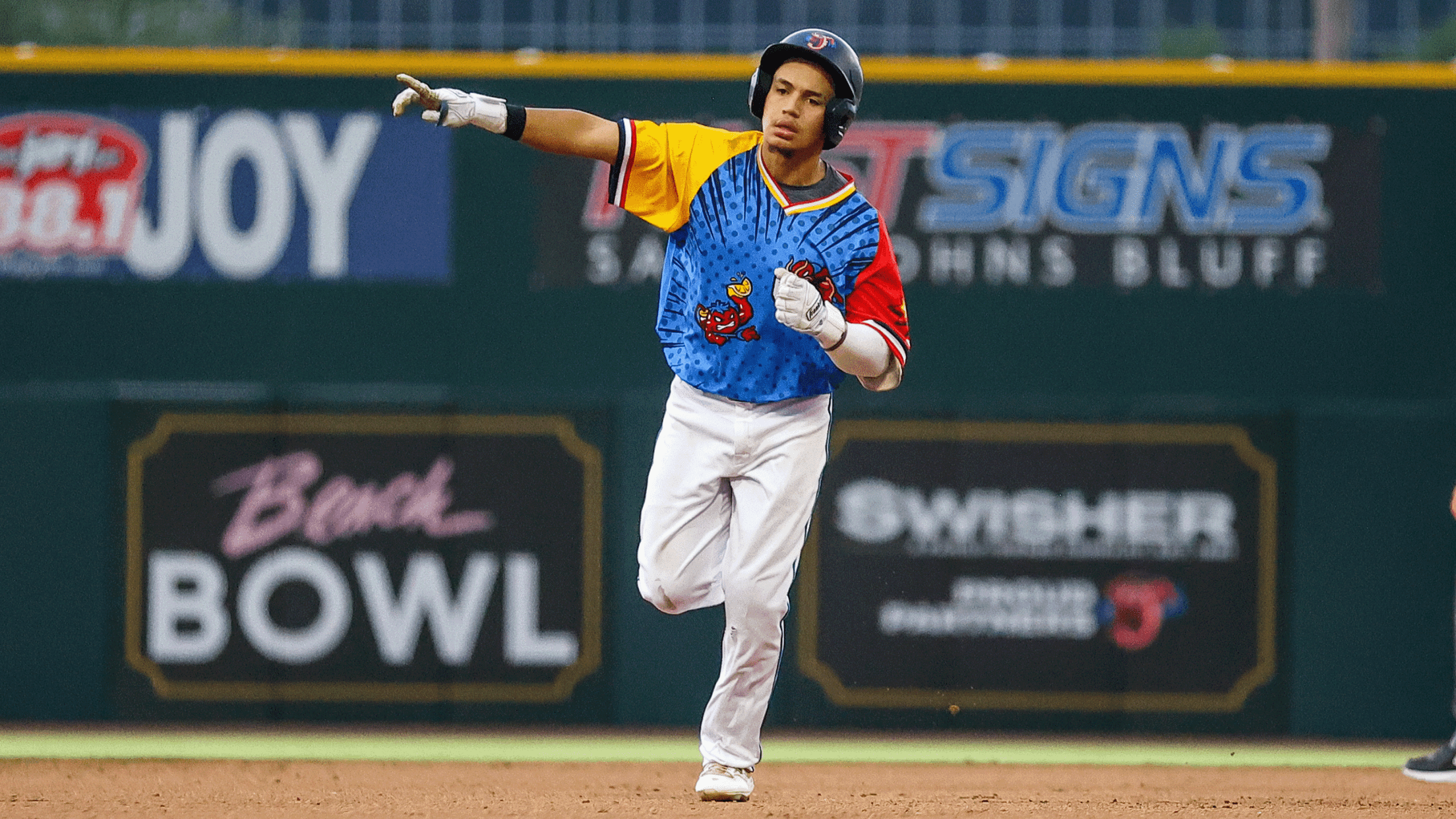 Javier Sanoja blasts two home runs in Jacksonville's 6-2 win over Durham Sunday night at 121 Financial Ballpark. (Liam Selvido/Jacksonville Jumbo Shrimp)