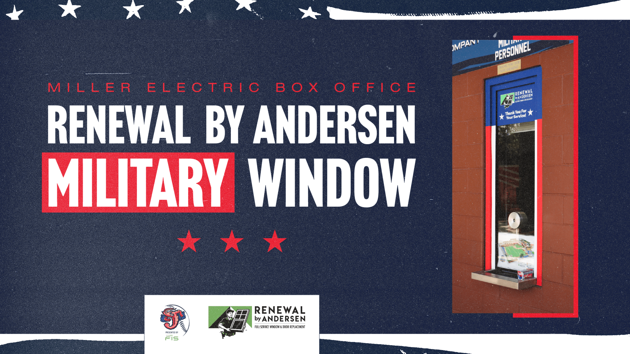 Active military members and Veterans are invited to stop by the Renewal by Andersen Military Window at the Miller Electric Box Office on the day of the game with their military ID to claim tickets while supplies last. Renewal by Andersen Windows & Doors will provide 50 tickets free of charge for all 75 Jumbo Shrimp home games.