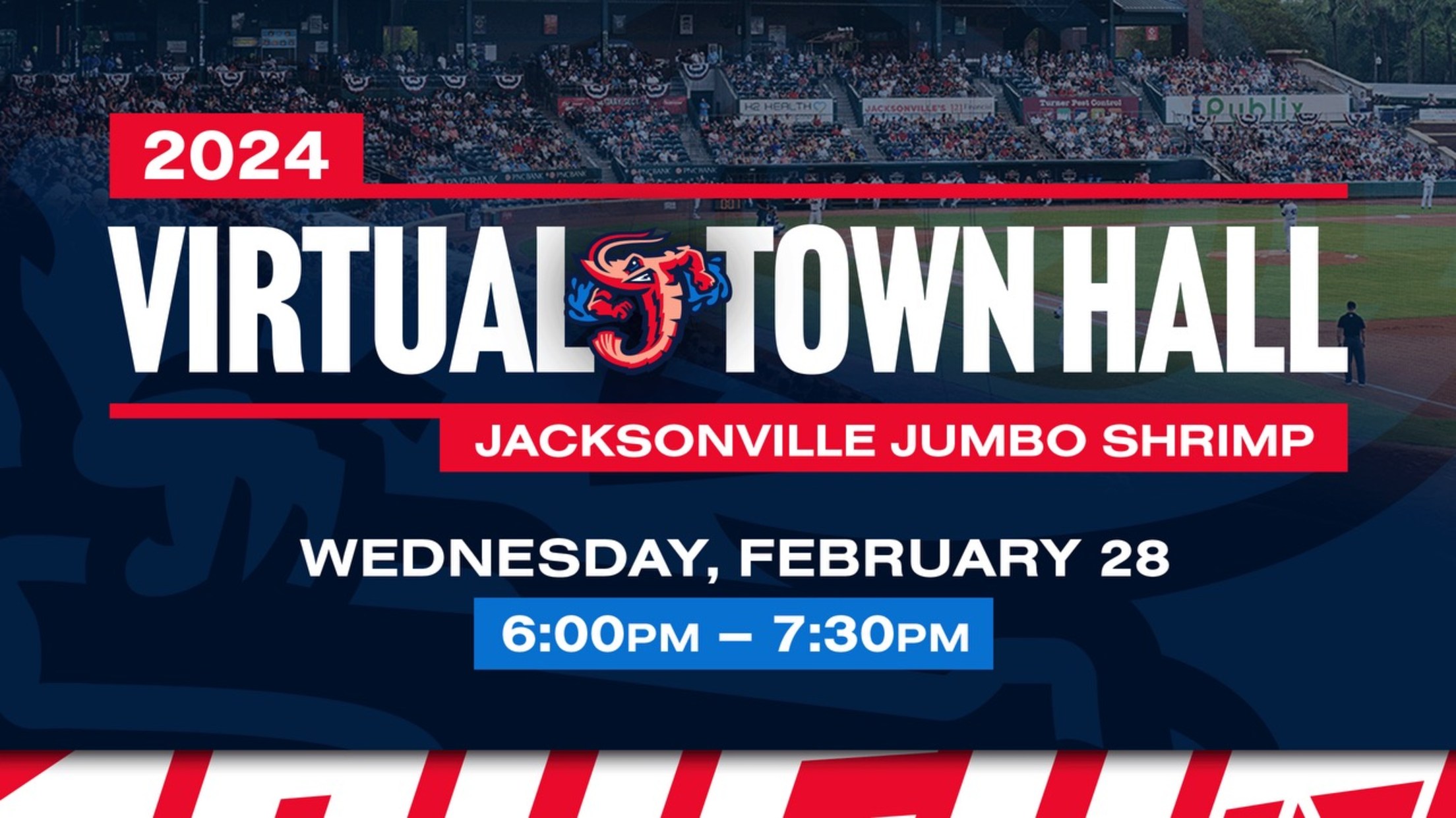 JACKSONVILLE, Fla. – With the club’s Opening Day on March 29 rapidly approaching, the Jacksonville Jumbo Shrimp are inviting Crustacean Nation to a Virtual Town Hall from 6-7:30 p.m. on Wednesday, February 28 to share the team’s upgrades and developments on several different fan experiences that are ready to be rolled out for the 2024 season presented by FIS.
