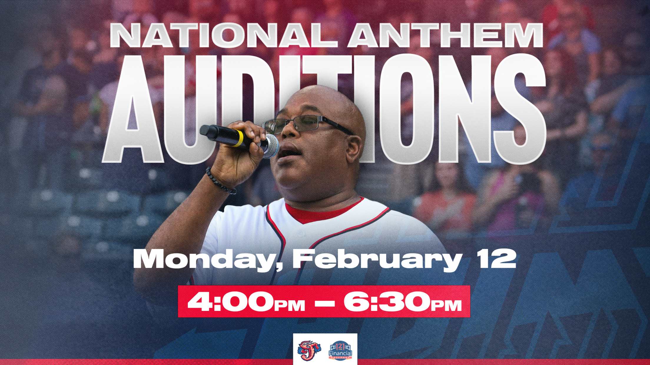 JACKSONVILLE, Fla. – As the Jacksonville Jumbo Shrimp prepare to open their 2024 schedule of 75 home games on March 29, the club is inviting the talent of Northeast Florida to audition to perform the National Anthem before a Jumbo Shrimp home game during the upcoming season. Individuals and groups can now register for the club’s National Anthem auditions, to be held from 4-6:30 p.m. on Monday, February 12 at 121 Financial Ballpark.