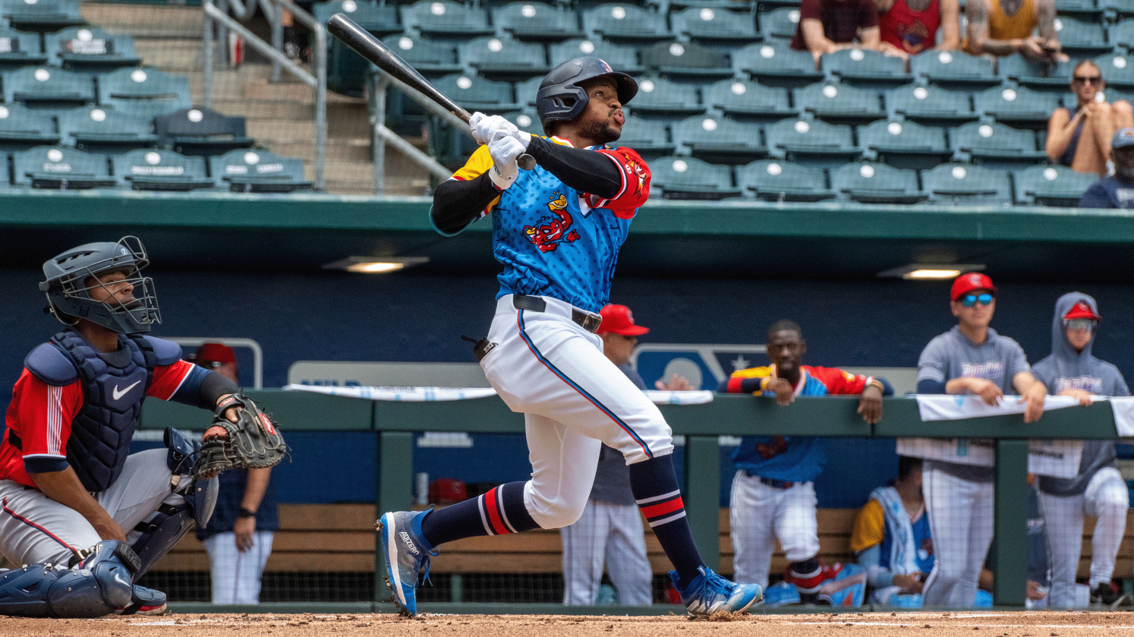 The Jumbo Shrimp broke the tie in the fifth as Bride (11) rocketed a go-ahead solo home run.