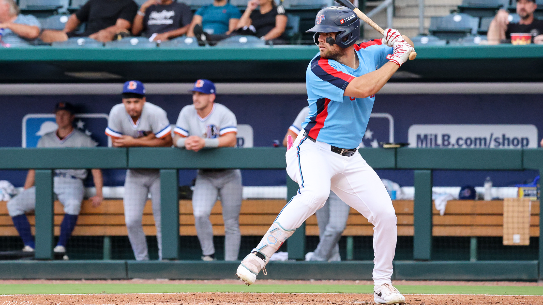 Jakob Marsee went 3-for-4 with a double, home run and two RBIs on Saturday at Gwinnett. (Chaim Goranson/Jacksonville Jumbo Shrimp)