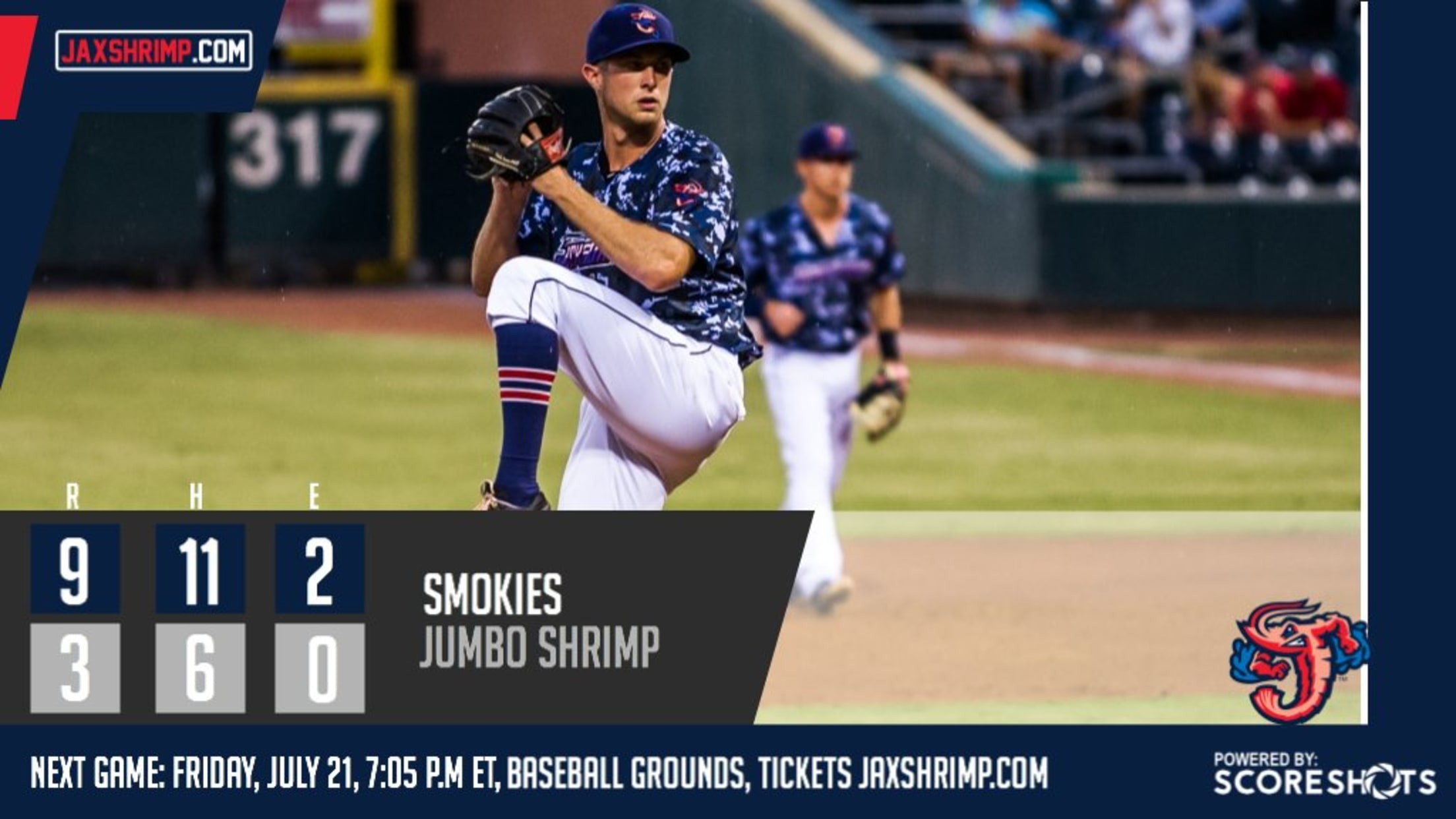 UP NEXT: The Jumbo Shrimp continue their series with Tennessee at 7:05 p.m. Friday, when Jacksonville right-hander Joe Gunkel (3-6) is scheduled to face Smokies right-hander Trevor Clifton (5-5). Fans may visit any participating NAPA AutoCare Center to get a FREE general admission ticket for the games, which will be followed by NAPA AutoCare Family Fireworks. The Jumbo Shrimp will wear red "Bold City" jerseys on Red Shirt Friday, and fans who wear red can save $1 per ticket at the box office, or donate the $1 to the Intrepid Fallen Heroes Fund. Gates open at 4:30 p.m. for Miller Lite Happy Hour, presented in part by Wild Wing Café, with Miller Lite beer specials in the Craft Cave inside the third-base gate until 7:30 p.m. The Wheelhouse Chef's Table will include a buffet in the suite-level lounge open to all fans for $12 per plate. The game is presented by WEJZ Lite 96.1.