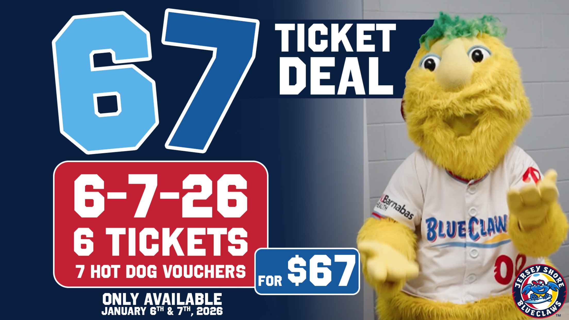 JERSEY SHORE, NJ - 6-7 is coming to ShoreTown! On January 6th and 7th, the BlueClaws are offering a special ticket package for our 6/7 game (June 7th)! You'll get six tickets and seven hot dogs for just $67!