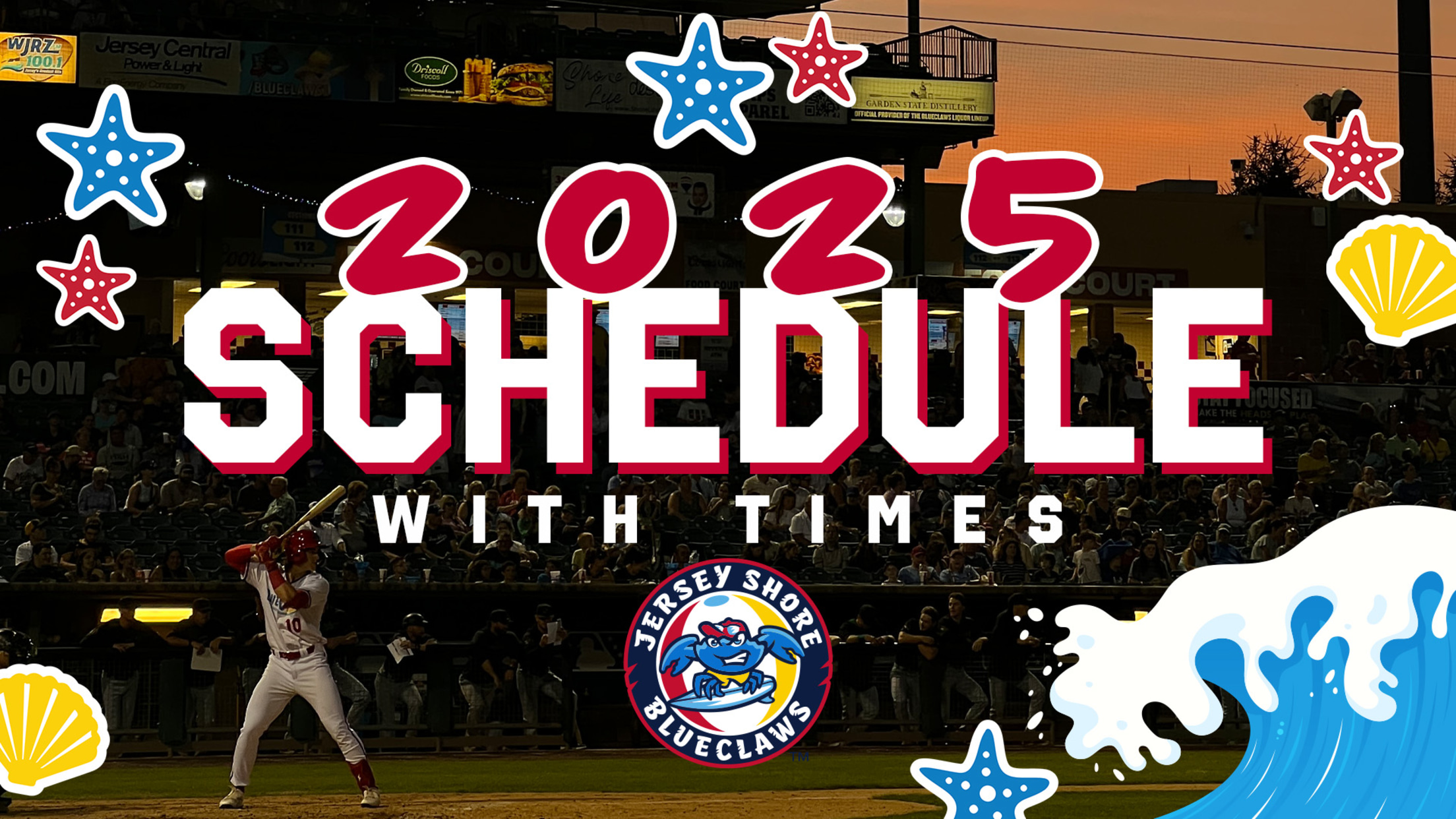 JERSEY SHORE, NJ - The BlueClaws have released their 2025 home game times, with Opening Night at the Jersey Shore set for Tuesday, April 8th at 6:35 pm against the Aberdeen IronBirds (Orioles). Click here to see the full 2025 schedule with home game times.