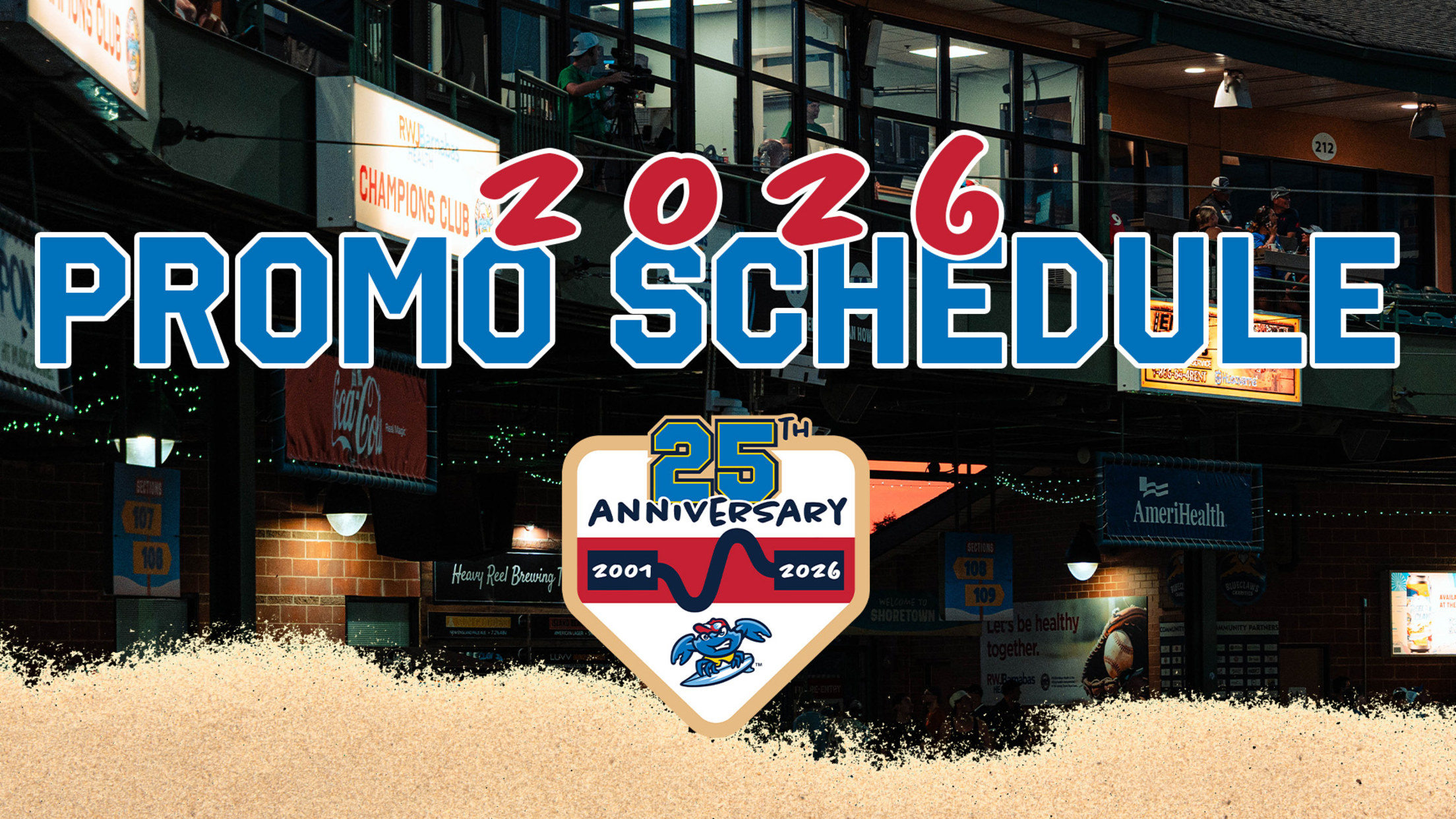 JERSEY SHORE, NJ - With just weeks to go until Opening Night, the BlueClaws have released their 2026 Promotional Schedule. The 25th Opening Night at the Jersey Shore set for Tuesday, April 7th, the BlueClaws will have several 25th Anniversary-related promotions, several new giveaways and theme nights, and much more!