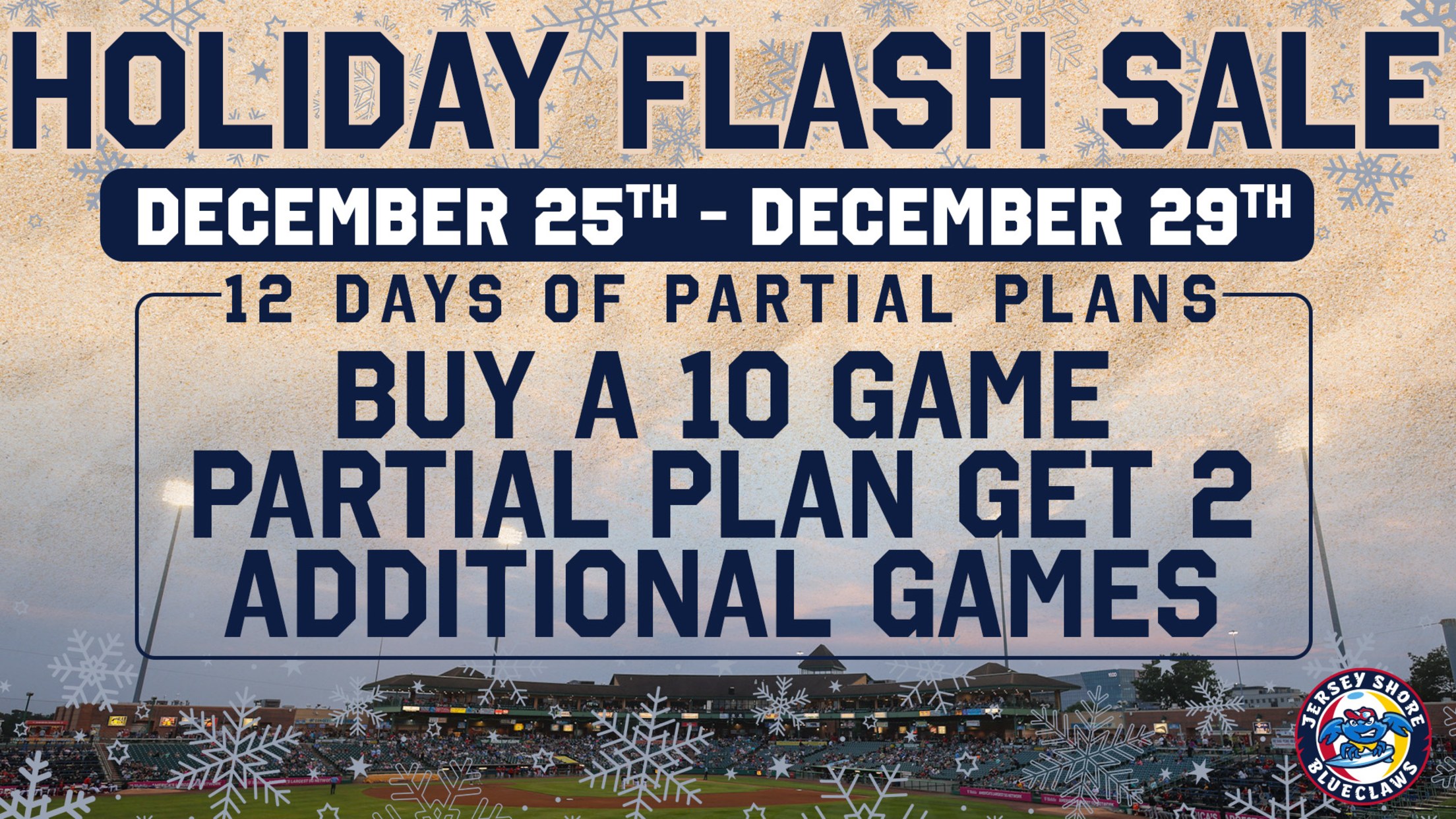 JERSEY SHORE, NJ - Here's a great after-Christmas idea! The BlueClaws are having a Holiday Flash Sale that runs through December 29th through which you'll get two additional games with. your BlueClaws Partial Plan. This means instead of 10 great BlueClaws games this summer, you'll get 12, plus all of the other great benefits of a BlueClaws ticket package!