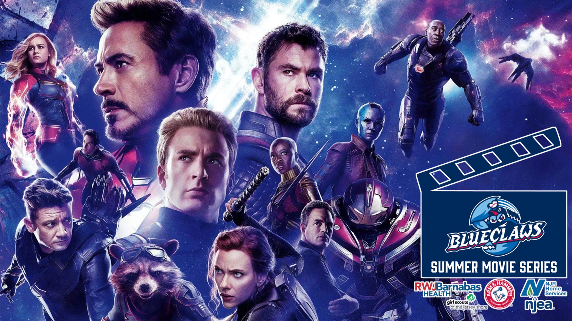 The BlueClaws Summer Movie Series, presented by RWJBarnabas Health, NJR Home Services, Arm & Hammer, the Girl Scouts of the Jersey Shore, and the NJEA continues on Friday, July 31st with Avengers End Game on the big board at FirstEnergy Park.