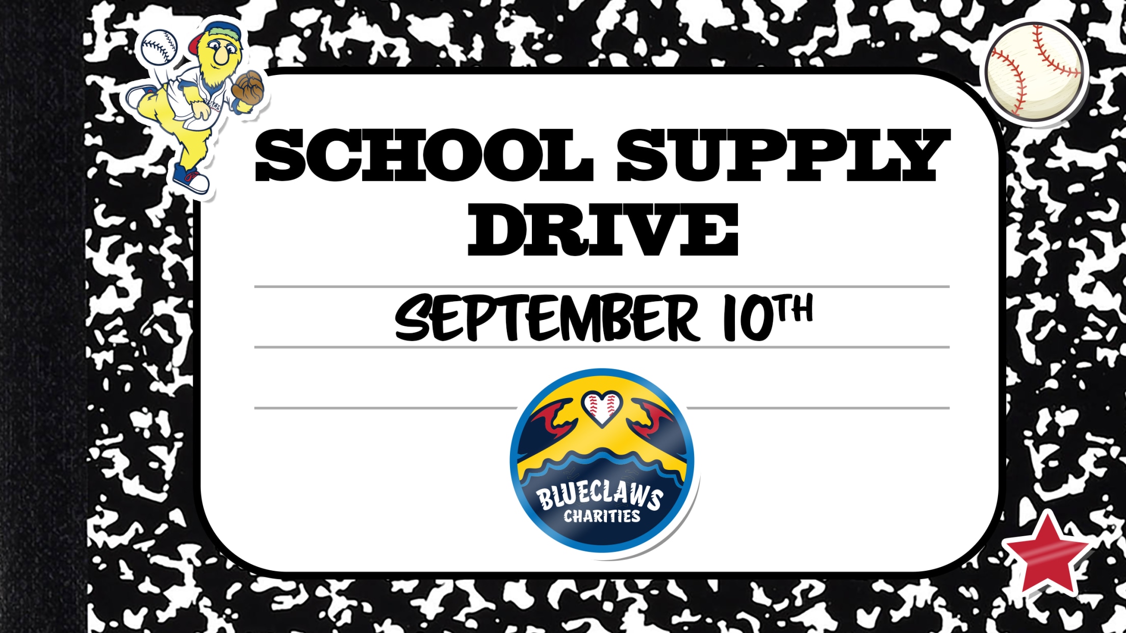 JERSEY SHORE, NJ - The BlueClaws will host a School Supply Drive at their game on Friday, September 10th. Fans are asked to bring school supplies to the game for the drive hosted by BlueClaws Charities. Items can be dropped off at the New Jersey Natural Gas Information Booth on