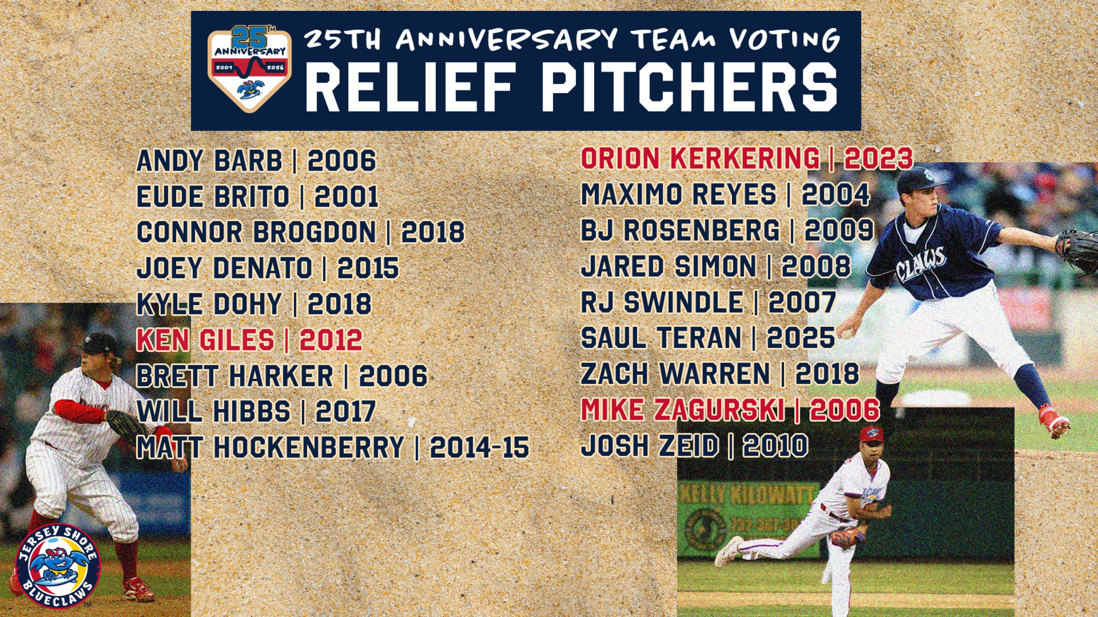 JERSEY SHORE, NJ - Voting is now open for the BlueClaws 25th Anniversary Team. Every Monday, BlueClaws fans can vote on one position group. We're down to our last category, relief pitchers! In March, the BlueClaws will then unveil the 25th Anniversary Team as part of the team's 25th Anniversary