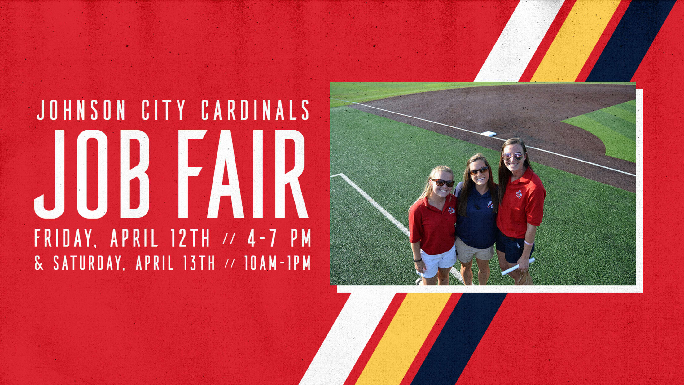 JOHNSON CITY- The Cardinals have announced that they will be hosting their annual job fair on Friday, April 12th from 4 p.m. until 7 p.m. and Saturday, April 13th from 10 a.m. until 1 p.m. The job fair will take place at the Memorial Park Community Center - 510 Bert Street, Johnson City TN 37601.